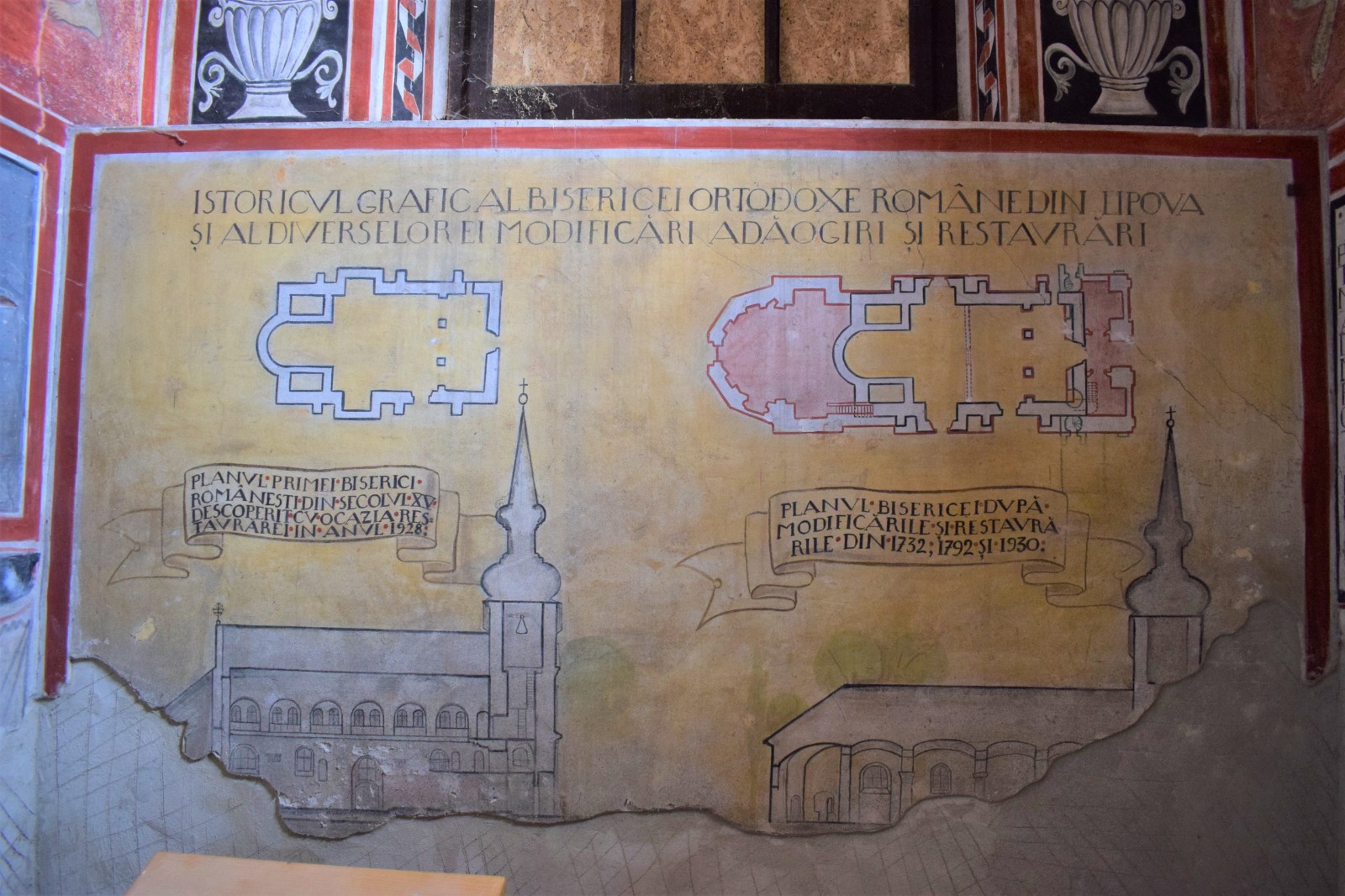 În vara lui 1928, preotul Manuilă din Lipova trimite o scrisoare Comisiunii. „Renovarea bisericei ort. Românești din Lipova în baza devizelor aprobate de consiliul eparhial ortodox român din Arad s-a început cu observarea oficială a celor dispuse de onorata Comisiune. Pictorul angajat, conformându-se, a aflat (în sensul de găsit – n.r.) sub stratul de var pictură foarte prețioasă. Scoaterea în relief a picturei a recamat și spargerea unor păreți, precum și deteriorarea unor galerii deasupra ușilor de la naia (naosul – n.r.) bisericii cu scaune pentru bărbați, reconstruirea cărora nu se cuprinde în devizul lucrărilor.