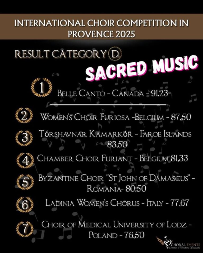 Corul Psaltic a fost încadrat la categoria D (Sacred Music), alături de coruri din Canada, Belgia, Insulele Feroe, Italia şi Polonia. Peste corurile din Polonia şi Italia, Corul Psaltic s-a clasa pe locul 5, cu un punctaj de 80,50.