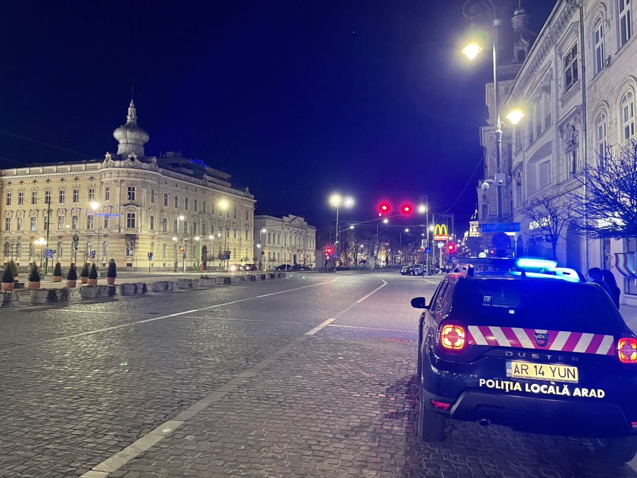 ARAD. Așadar, după ora „stingerii” pe străzile orașului s-a instalat liniștea. Poliția, Jandarmeria și Poliția Locală erau la datorie și doar ici și colo câte o mașină mai „spărgea” liniștea din centrul orașului.