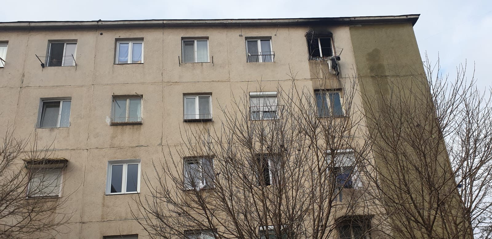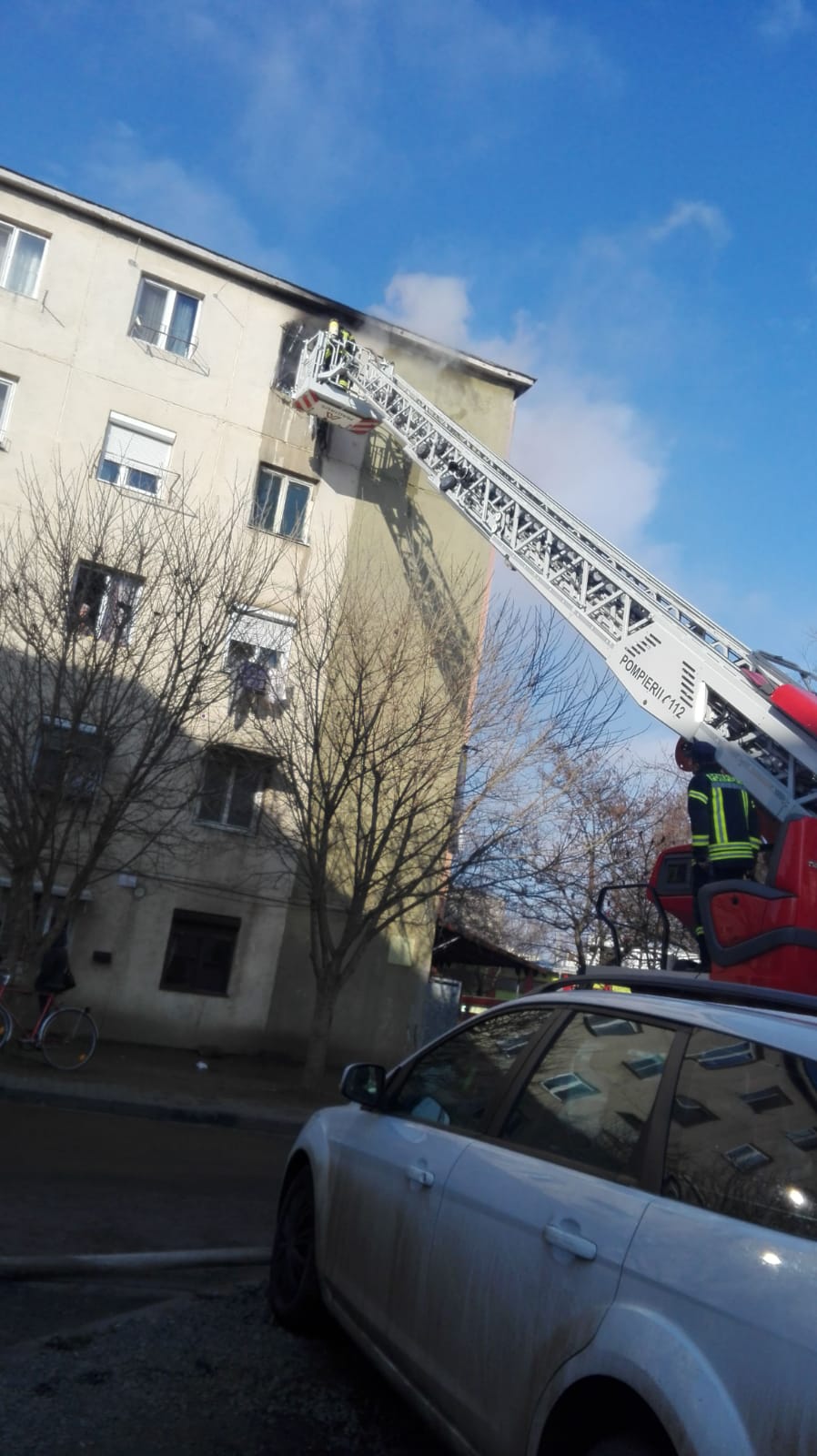 UPDATE 2: Pompierii au stabilit, din primele cercetări efectuate, cauza producerii incendiului. Este vorba despre un scurtcircuit produs la un boiler în baia garsonierei.