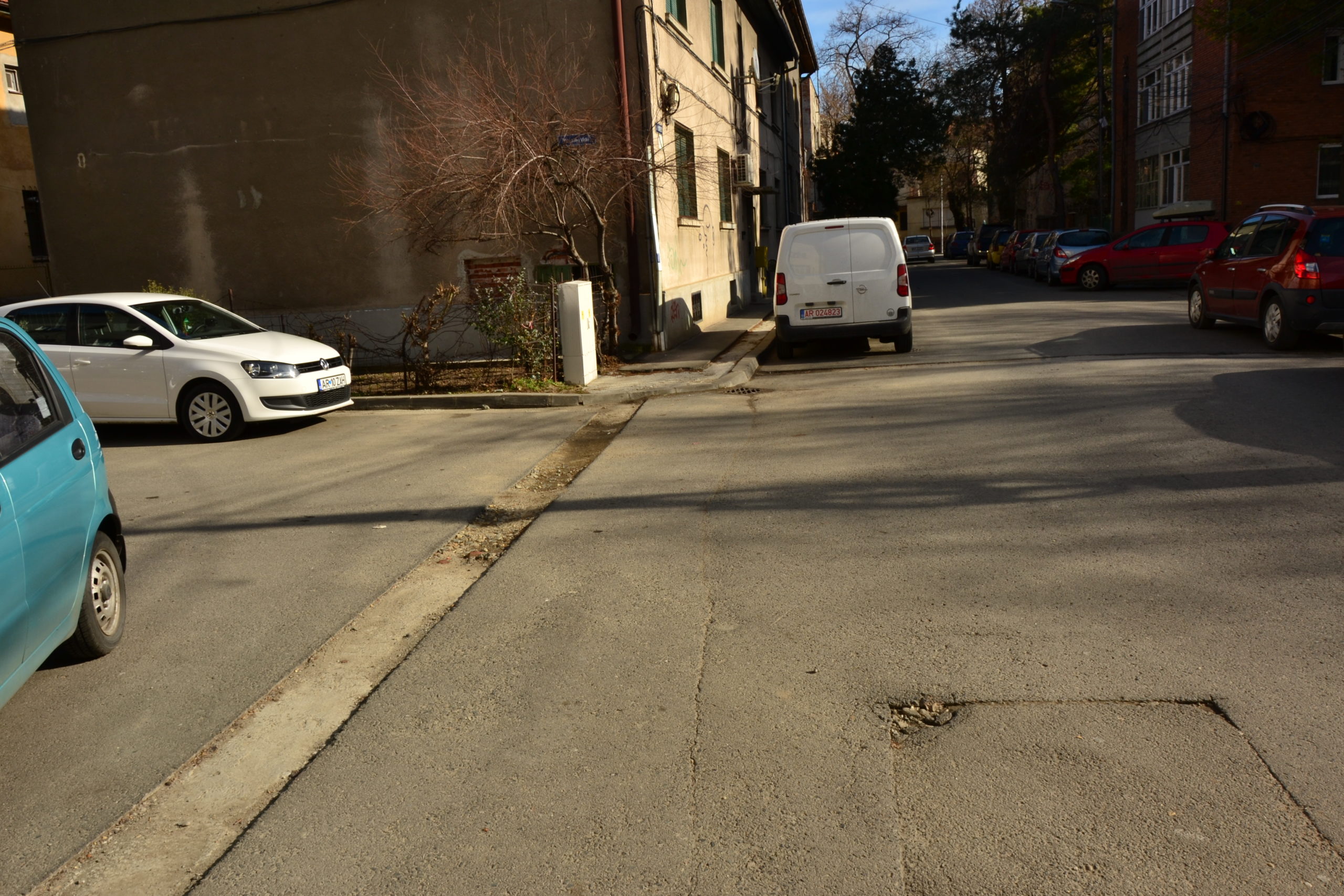 In Piața Avram Iancu,intrarea din șosea pe poarta imobilului….sta așa de un an,doar un șanț neastupat tronează la bordura…la nr 15..