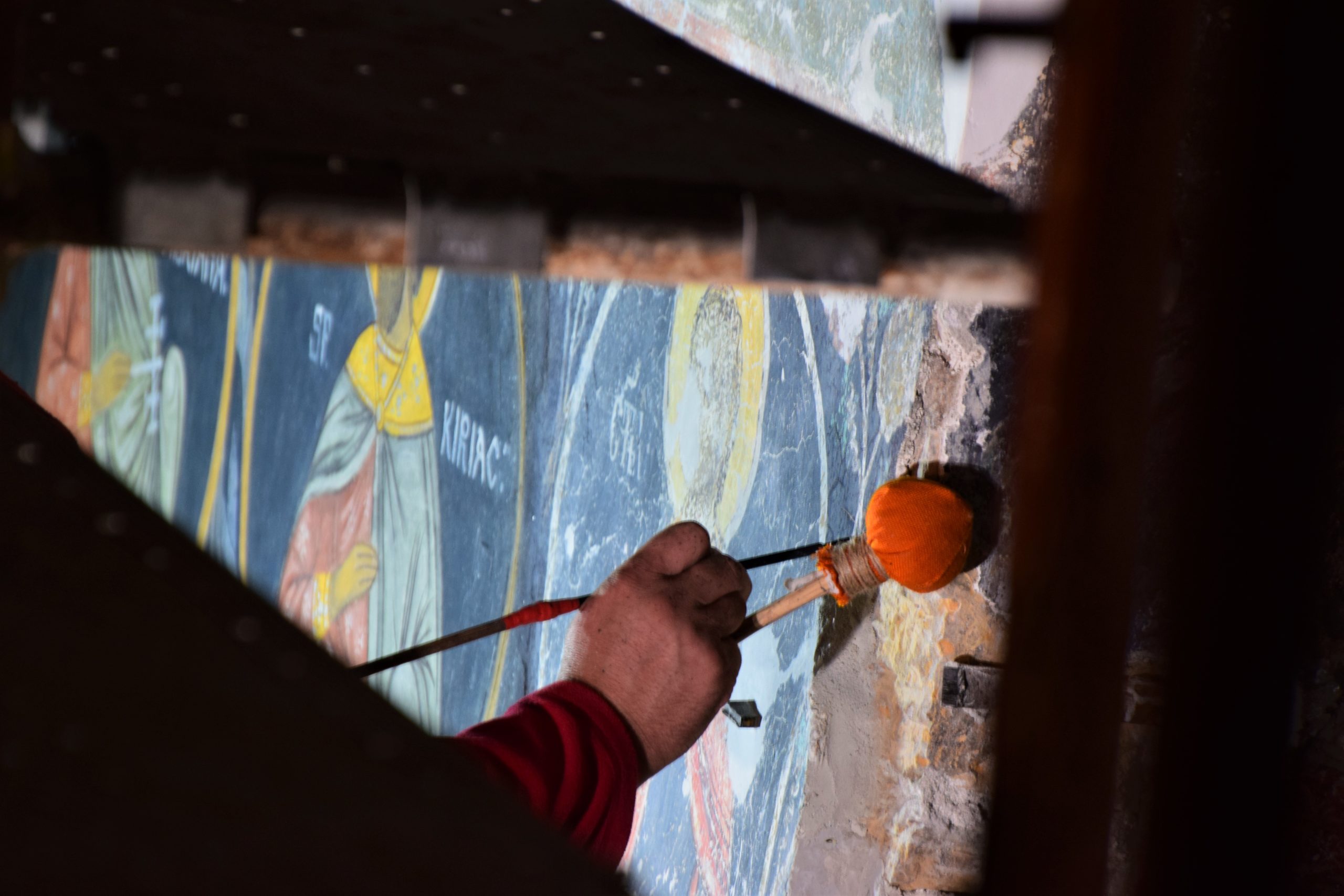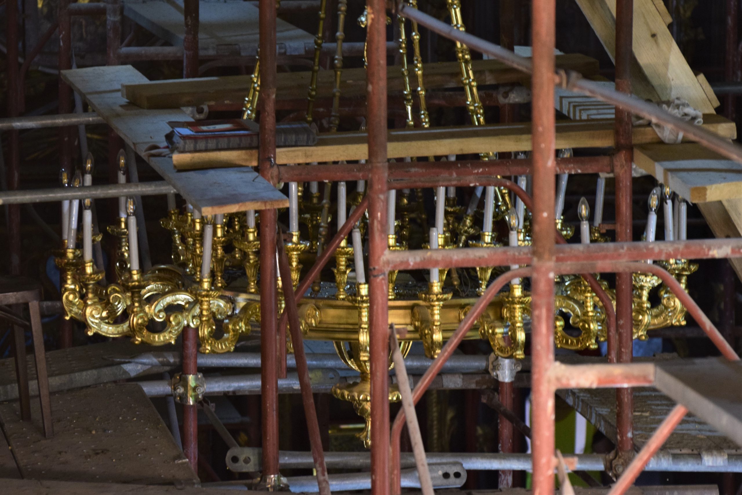 Lucrările de la biserica aflată în centrul Lipovei se desfășoară pe toate fronturile, avansând considerabil față de ultima vizită făcută acolo, anul trecut. Lucrările de consolidare a clădirii – ce au constat în introducerea unor micro piloni în jurul clădirii și a unora în pereții edificiului – au fost finalizate, acum lucrându-se în special la restaurarea interiorului și a exteriorului. Fațadele sunt aproape gata, fiind pregătite deja mostre de culoare. La interior, pictorii restauratori dau din nou viață picturilor de pe pereții și bolțile lăcașului, unele părți, cum ar fi cele din altar sau din pronaos, fiind finalizate deja. Per total, pictura interioară a fost restaurată în proporție de aproximativ 65% până acest moment. Un alt meșter lucrează zi de zi la refacerea uriașelor candelabre din biserică.