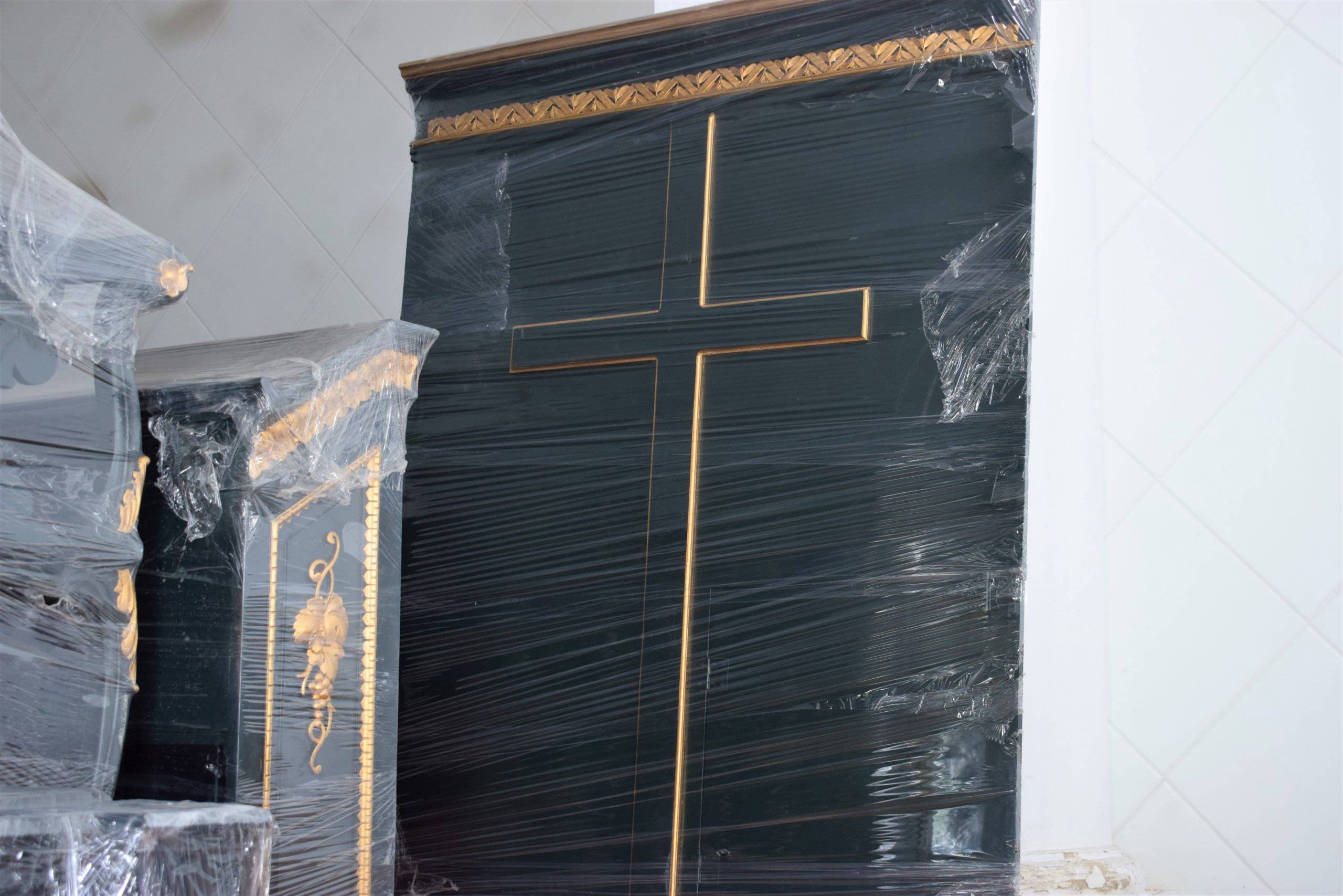 Întregul mobilier de lemn a fost scos, fiind trimis la Timișoara pentru restaurare. Acesta s-a întors, fiind momentan depozitat până la finalizarea lucrărilor din biserică. Și vitraliile au fost scoase și trimise, la rândul lor, la București pentru a fi restaurate.