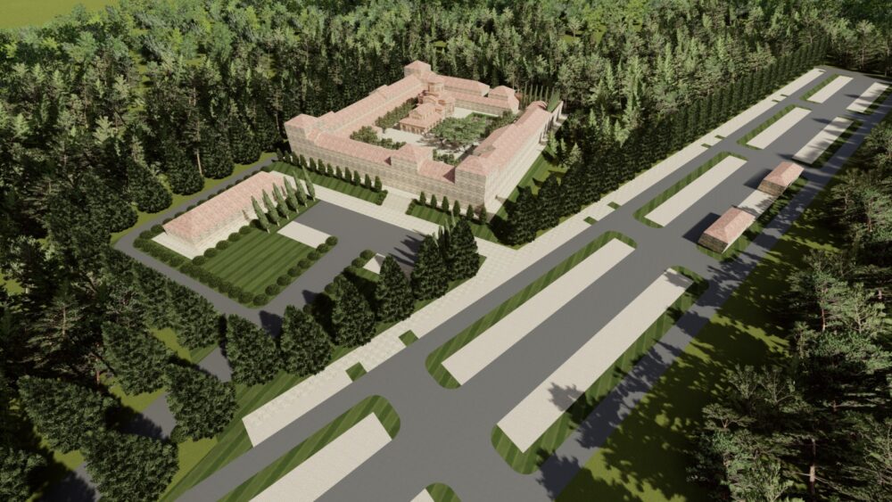 Iustin Popovici a precizat că proiectul va ocupa un teren de nouă hectare donat de un credincios, iar din suprafața totală a complexului mănăstirea va ocupa două hectare și va fi de tip cetate.