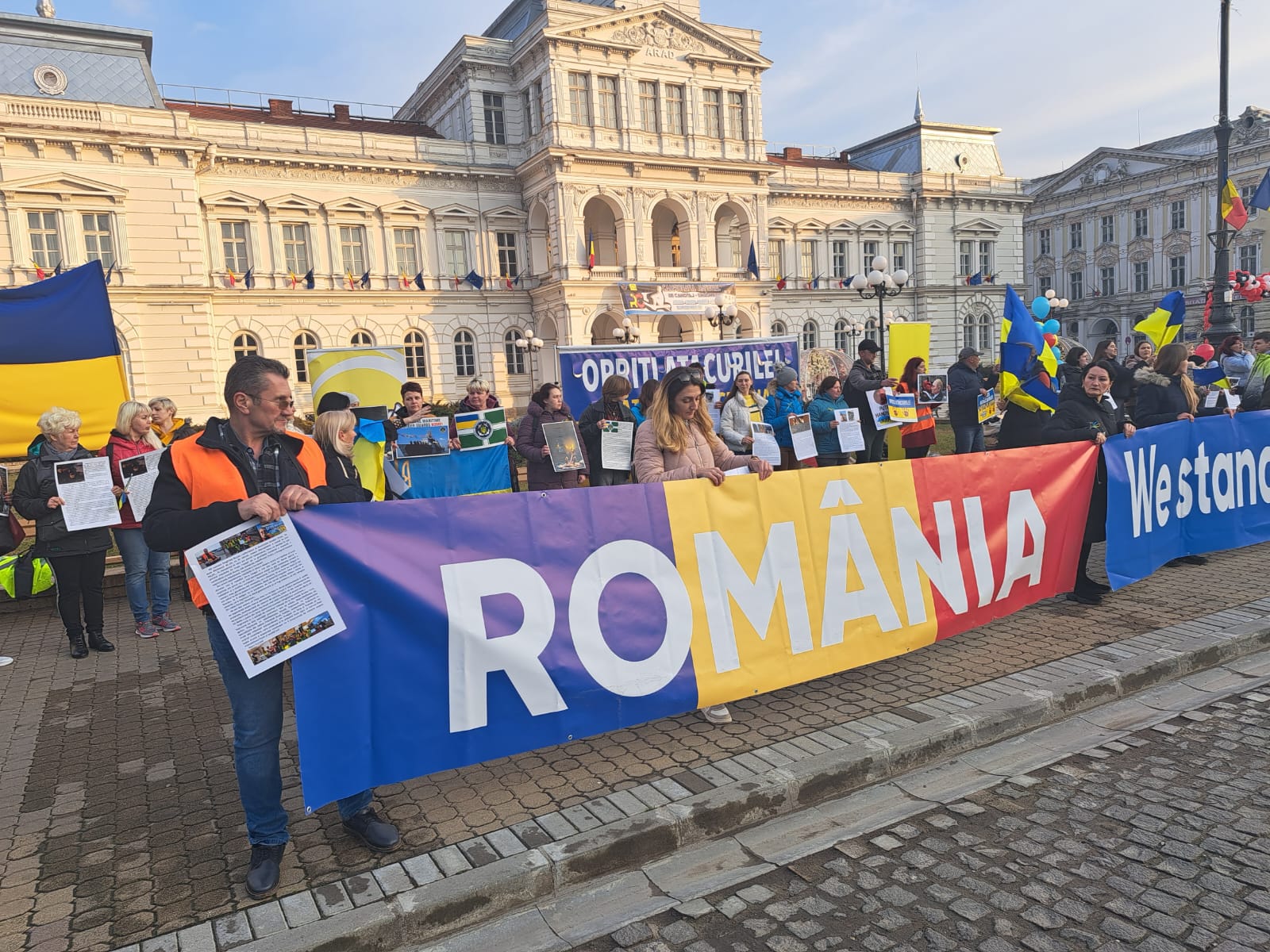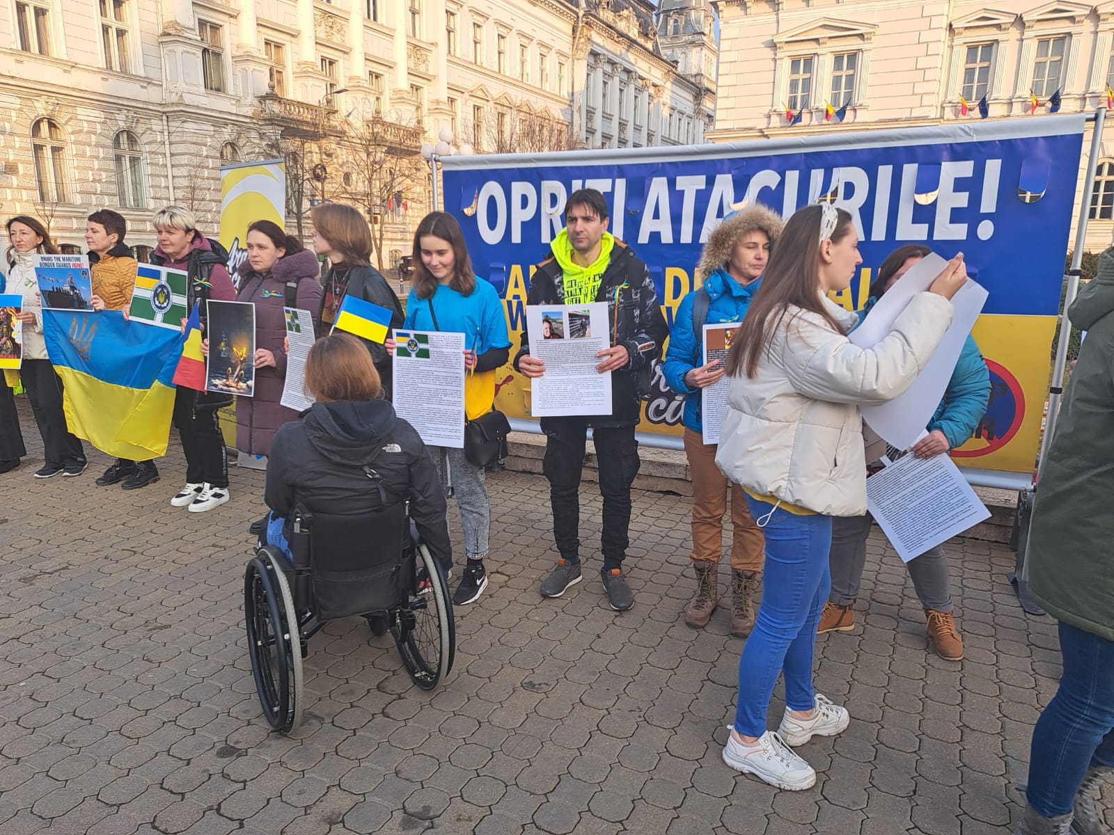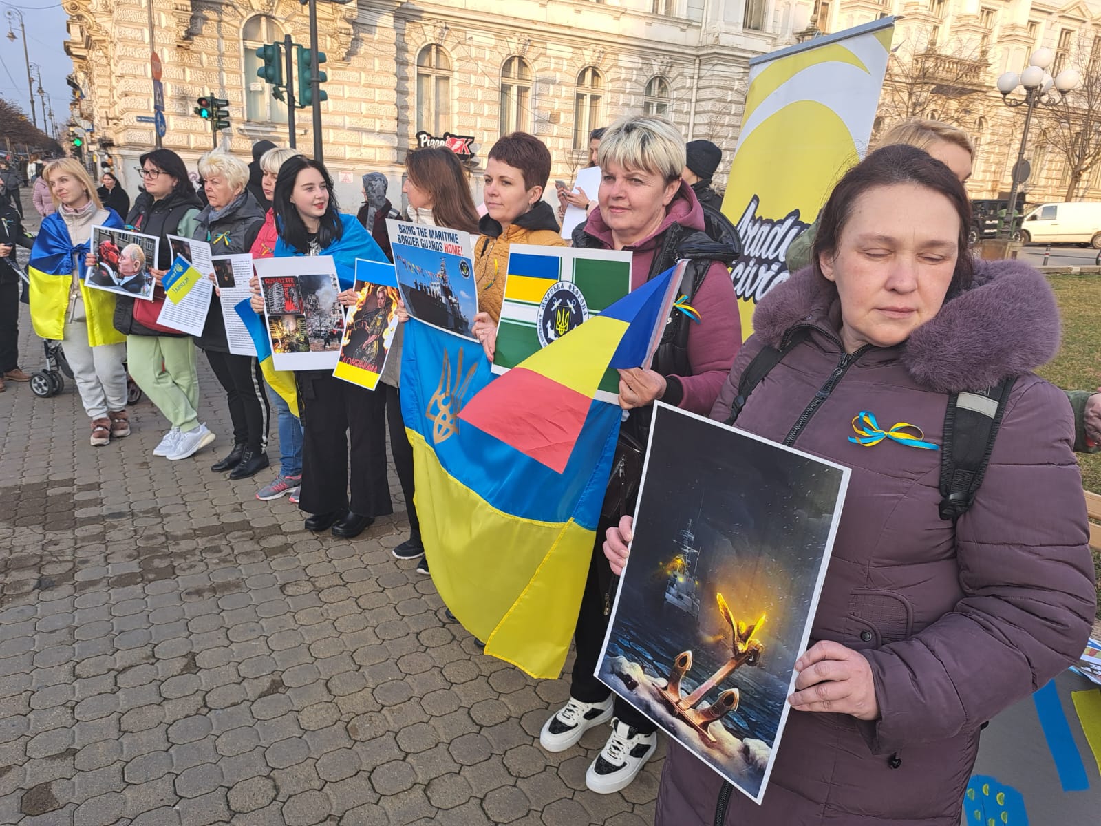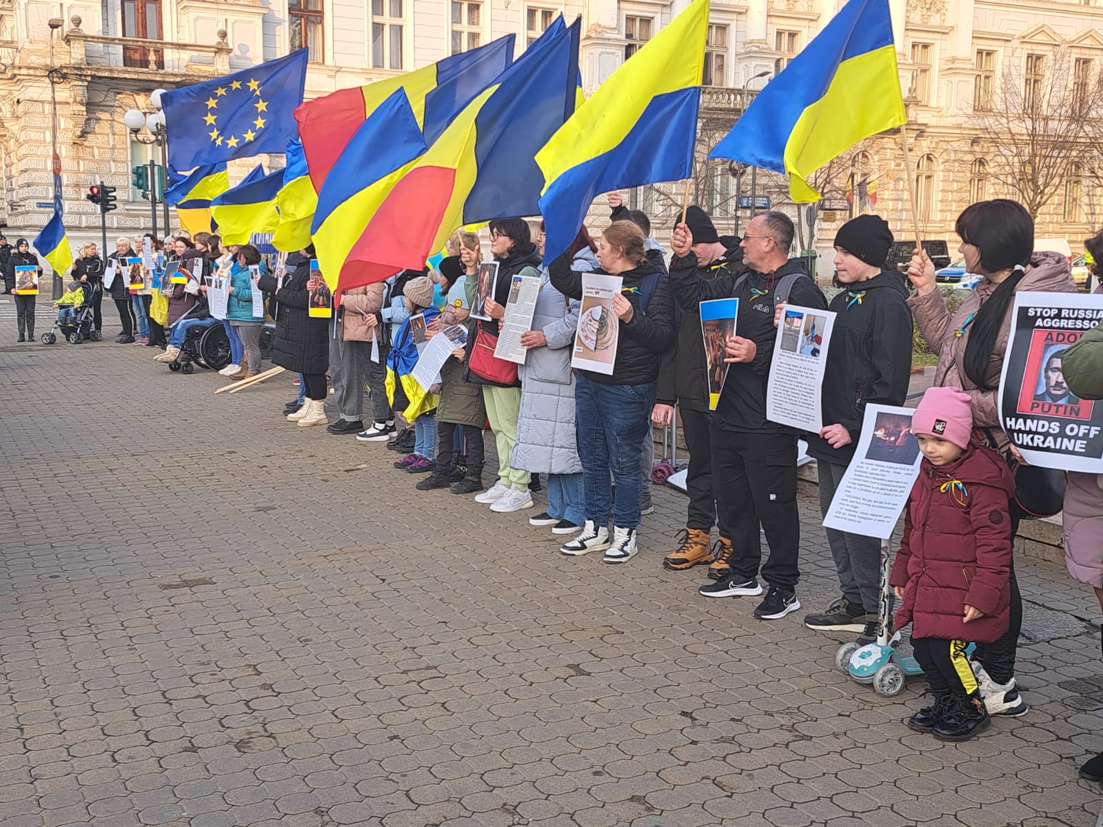 Cu steaguri, lumânări și pancarte cu povești dureroase, care i-au împins la pribegie, ucrainenii au comemorat un an de război. Un război care le-a dat viața peste cap, în care unii și-au pierdut viața iar alții au fost mutilați și în urma căruia foarte mulți dintre ei au rămas fără nimic din ceea ce aveau.