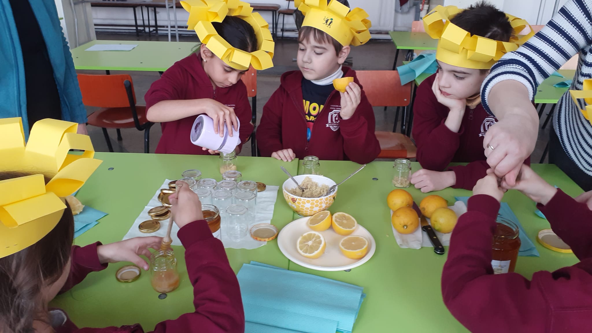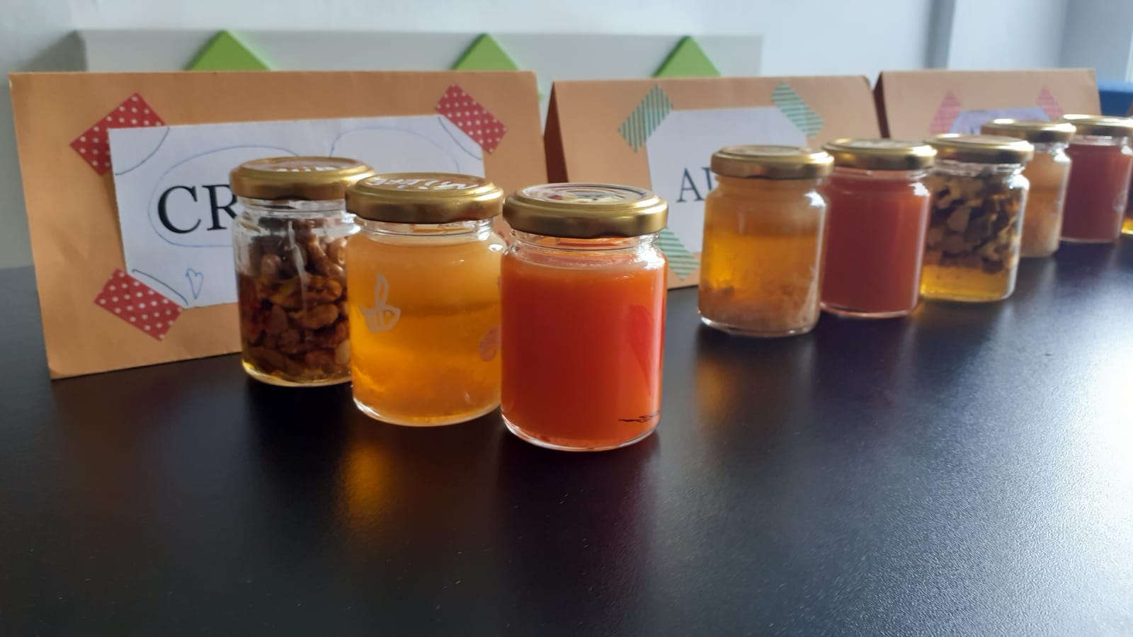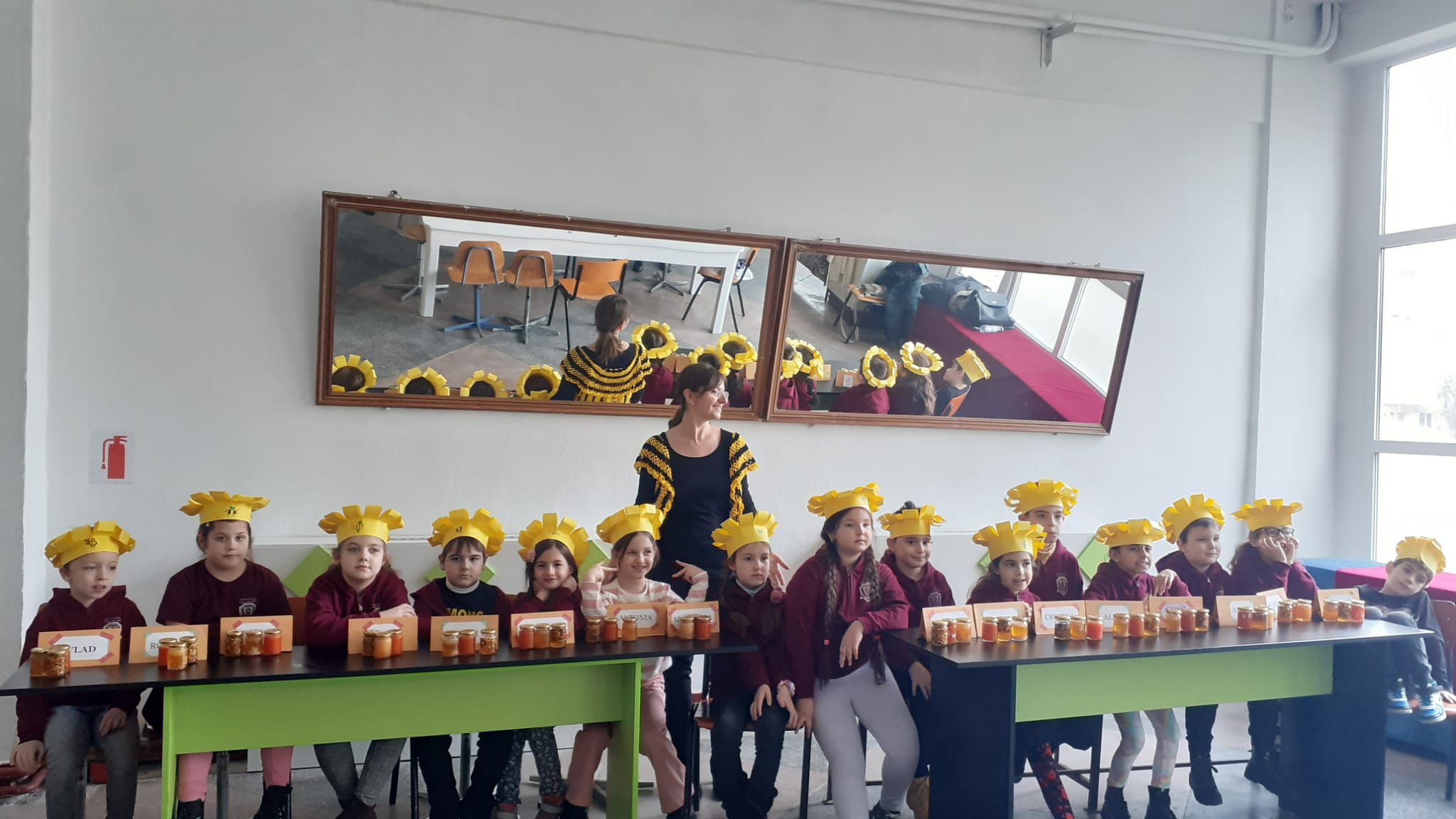 Cu „aurul” primit cadou, copiii și-au umplut, fiecare dintre ei, câte trei borcănele în care au adăugat pe lângă miere și plante: cătină, ghimbir și nuci. Ce au învățat? Au învățat cât sunt de importante albinele, ce înseamnă munca în echipă, buna organizare, hărnicia și poate mai presus de toate – că mierea este aliatul nostru în lupta cu virusurile și nu numai.