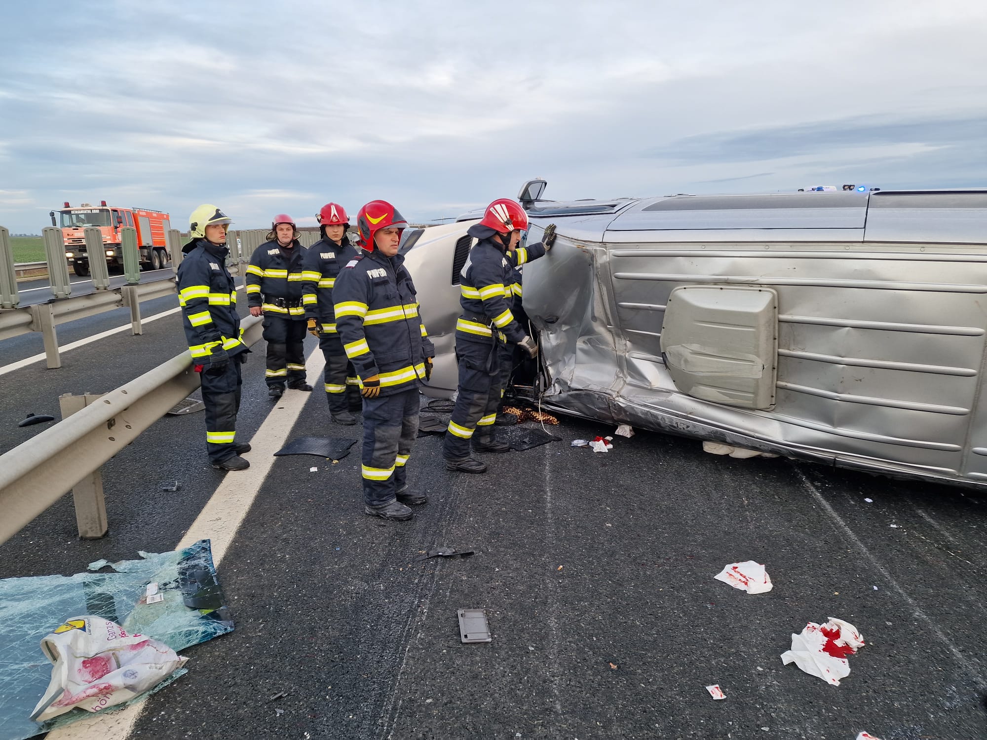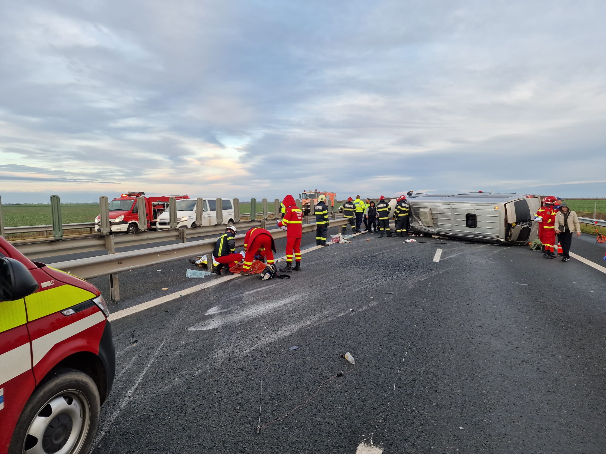 UPDATE: ISU Arad a anunțat că o persoană a decedat în urma accidentului. O persoană a suferit diverse traumatisme și a fost trasportată la Unitatea de Primire Urgențe Arad cu elicopterul SMURD, iar alți șapte pasageri aflați în microbuz sunt în stare bună, fără probleme deosebite. Aceștia au refuzat să fie transportați la spital. De asemenea, nu au rezultat persoane încarcerate în urma accidentului. ISU Arad a transmis că Planul Roșu de Intervenție a fost dezactivat.