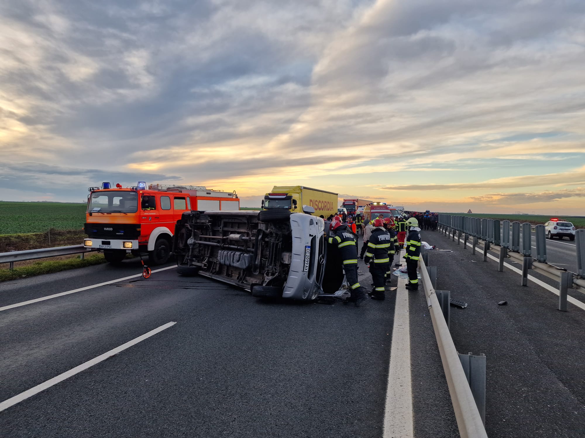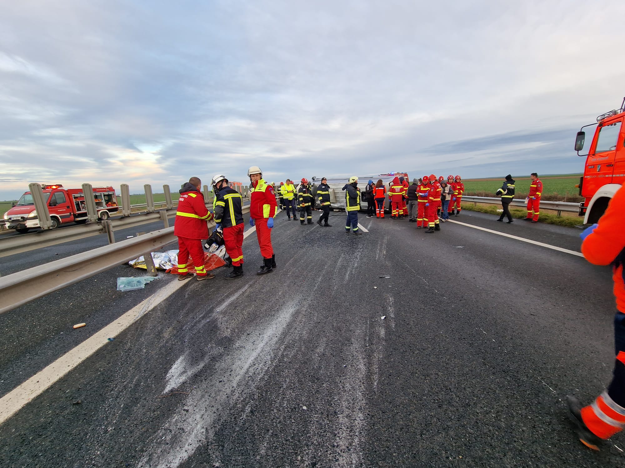 ARAD. Reprezentanții Inspectoratului pentru Situații de Urgență Arad au anunțat că au activat Planul Roșu de Intervenție imediat ce a fost anunțat accidentul. La fața locului s-au deplasat mai multe autospeciale ale ISU Arad, dar și SMURD Arad, SMURD Nădlac, SMURD Curtici, Chișineu-Criș, Ineu, Sebiș și Gurahonț, pentru a acorda primul ajutor medical.