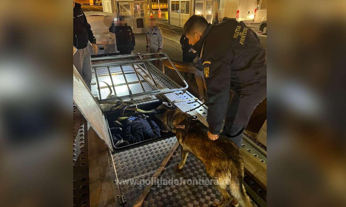 NĂDLAC. Polițiștii de frontieră de la Nădlac II au descoperit, la sfârșitul săptămânii trecute, 13 cetățeni străini din Bangladesh, India, Afganistan și Pakistan, care au încercat – prin diverse metode – să treacă ilegal granița cu Ungaria. Zece dintre migranți au fost găsiți ascunși cu ajutorul câinelui de serviciu, într-un loc special amenajat, într-o remorcă, iar alți trei au fost depistați în remorca unui camion ce transporta piese auto pentru o firmă din Germania. “La Punctul de Trecere a Frontierei Nădlac II, polițiștii de frontieră, alături de câinele de serviciu, au efectuat controlul amănunțit al unei autoutilitare ce tracta o remorcă, condusă de un cetățean român. Cu ocazia verificărilor, echipajul format din polițiști de frontieră și câinele de serviciu au descoperit, ascunse într-un loc special amenajat de-a lungul axului central al remorcii, zece persoane. La cercetări, colegii noștri au stabilit că cei în cauză sunt cetățeni din Bangladesh și India”, au transmis reprezentanții Serviciului Teritorial al Poliției de Frontieră Arad.Tot la Punctul de Trecere a Frontierei Nădlac II au fost depistați alți trei migranți. Este vorba despre doi cetățeni din Pakistan și un cetățean din Afganistan. Cei trei erau ascunși în remorca unui automarfar condus de un cetățean român. Potrivit STPF Arad, camionul transporta, conform documentelor de însoţire a mărfii, piese auto pentru o societate comercială din Germania. “În urma efectuării controlului amănunţit al automarfarului, au fost descoperiți doi cetăţeni din Pakistan și un cetățean din Afganistan, ce intenționau să treacă ilegal frontiera de stat cu scopul de a ajunge în ţări din vestul Europei. În ambele cazuri polițiștii de frontieră efectuează cercetări în vederea stabilirii întregii activități infracționale, urmând ca la finalizare să fie dispuse măsurile legale ce se impun”, au mai precizat cei din cadrul STPF Arad.