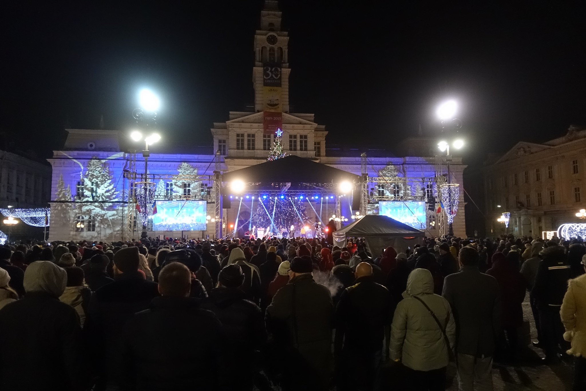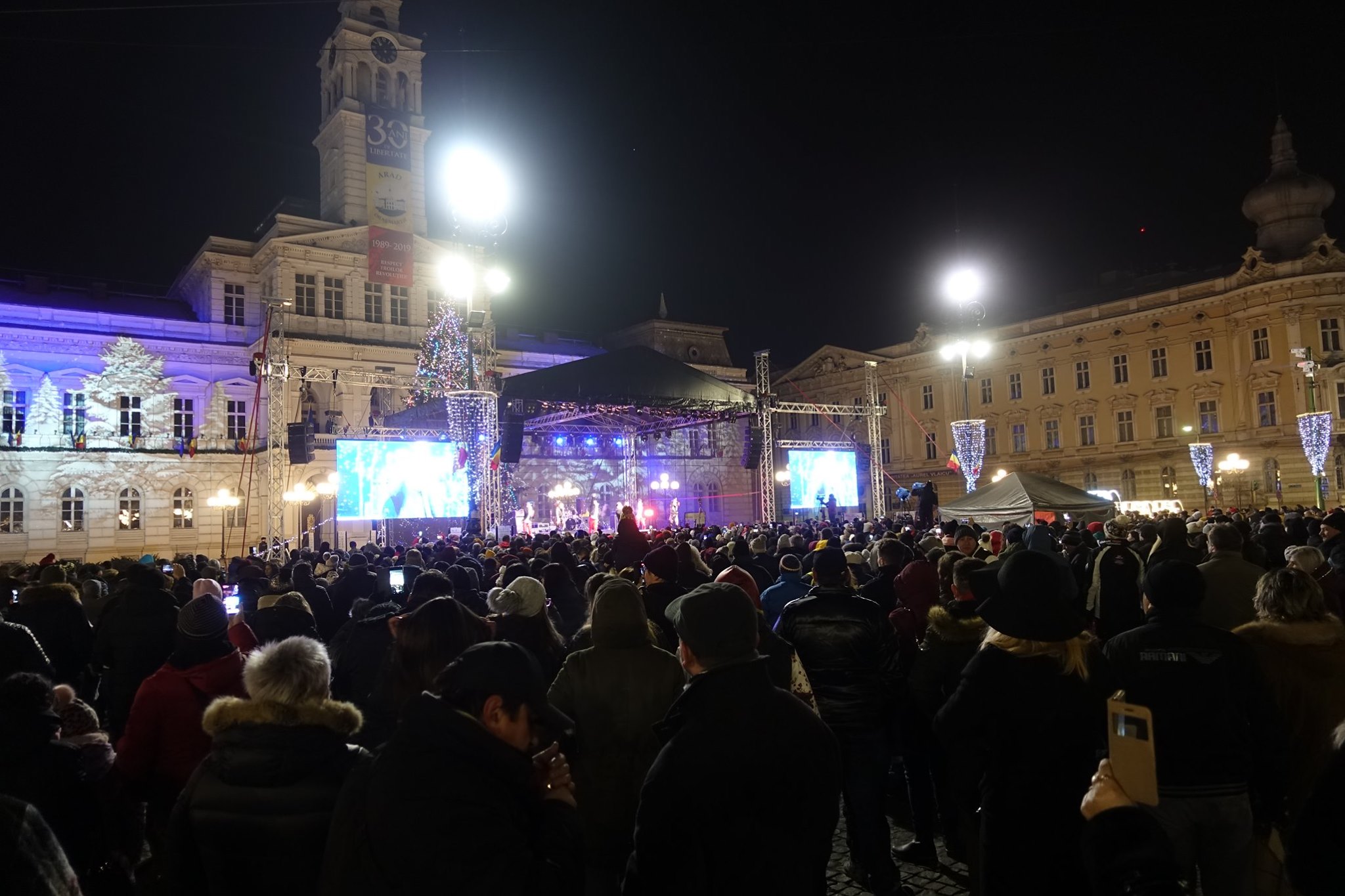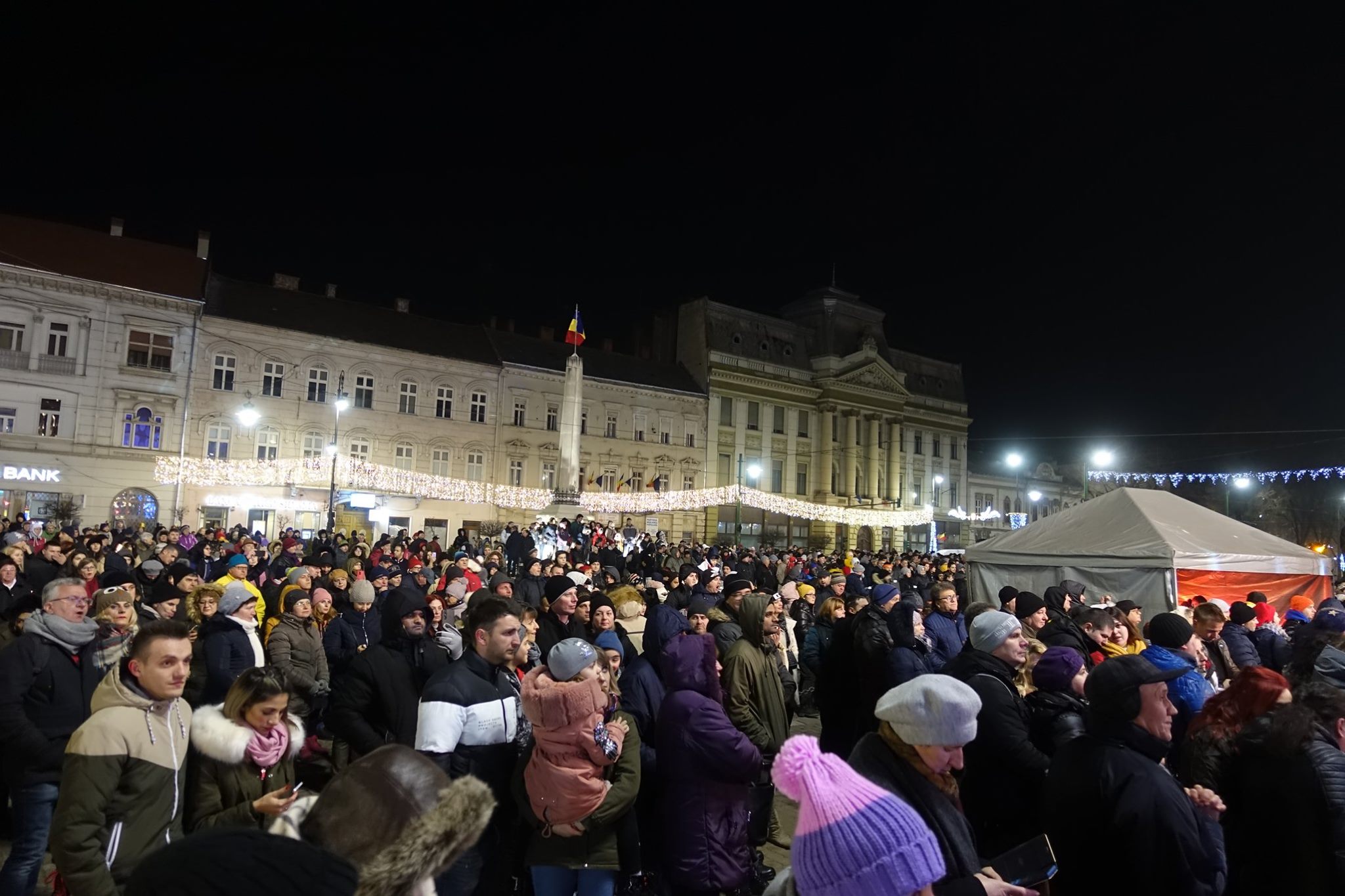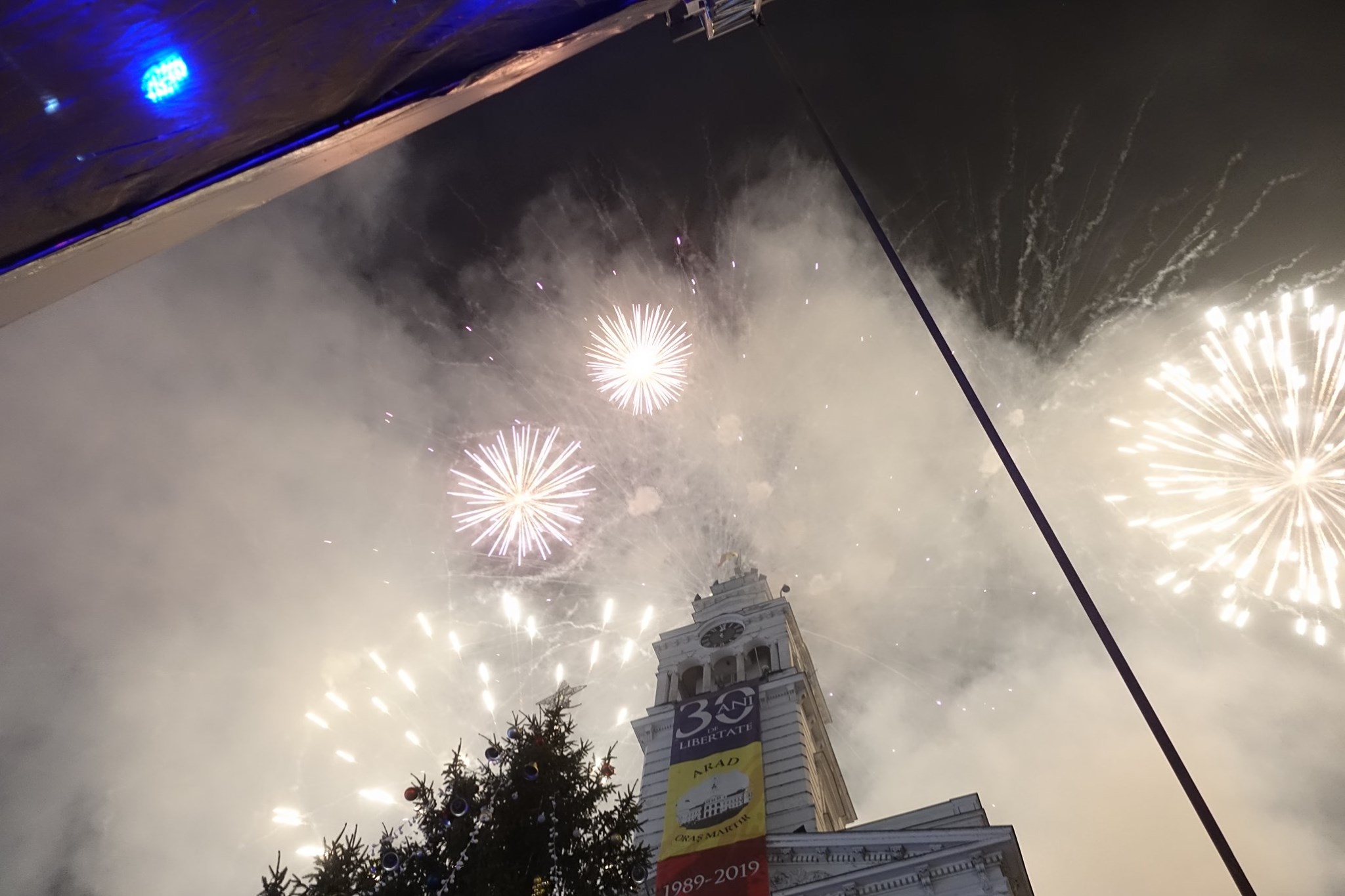 Punctul culminant al serii a fost spectacolul de artificii, un moment extrem de apreciat de toți arădenii care și-au petrecut Revelionul în fața Primăriei.