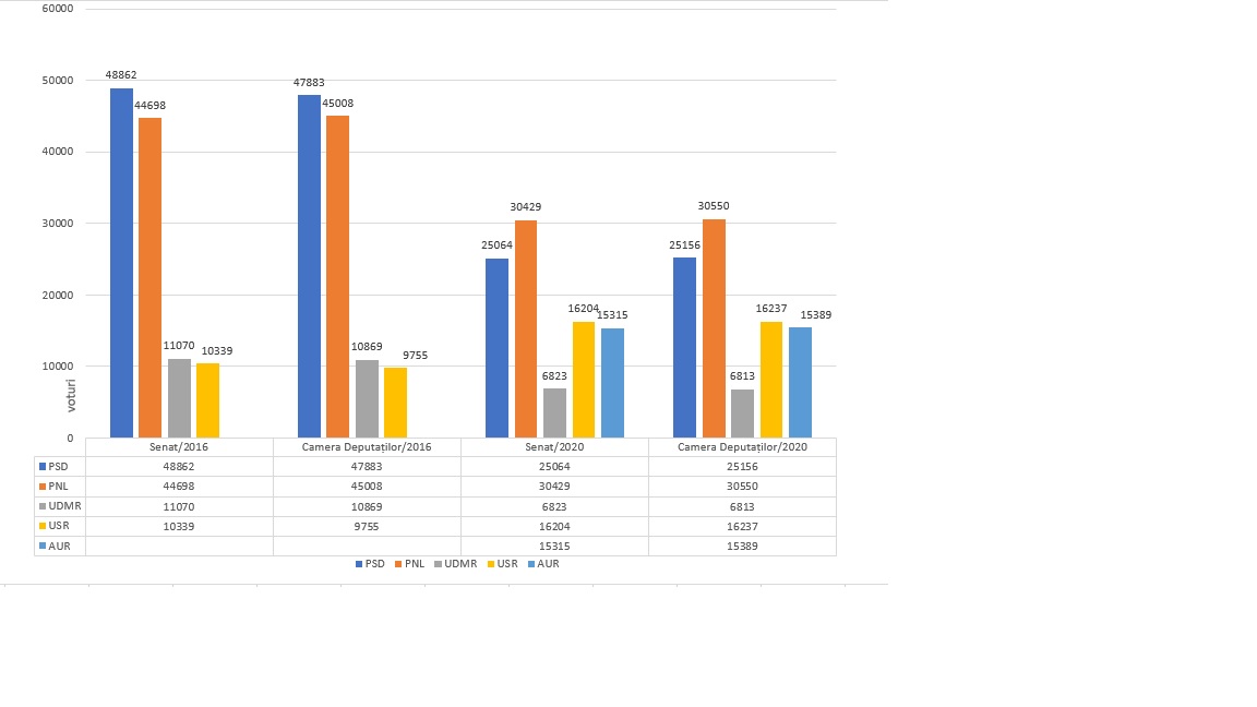 Așadar, în urma votului de duminică, PNL s-a clasat pe prima poziție în Arad cu 30.429 de voturi pentru Senat și 30.550 de voturi pentru Camera Deputaților. Comparativ cu 2016, liberalii au avut în acest an cu peste 14 mii de voturi mai puține decât în 2016. PSD, cel care s-a impus în 2016, a adunat la scrutinul actual 25.064 de voturi pentru Senat și 25.156 de voturi pentru Cameră, cu peste 20 de mii mai puține decât în 2016. Chiar și UDMR a pierdut din voturi, pe fondul absenteismului masiv din acest an, având cu aproximativ 4.000 de voturi mai puține decât în 2016.
