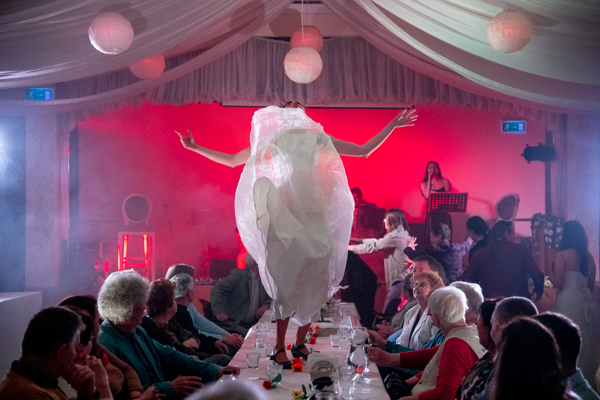 Vineri, 24 februarie, ora 16, în sala Teatrului de Marionete e programat spectacolul de teatru-dans „497” (coproducție a Companiilor „Aradi Kamaraszínház” și „Tabán Táncegyüttes Békéscsaba”, Ungaria) – în regia lui Farkas Tamás şi Tapasztó Ernő. Tot vineri, 24 februarie, de la ora 21, la Casa Jelen Arad va fi pusă în scenă drama „Cadavrul viu”, de Lev Nikolaevici Tolstoi (coproducție a Companiilor „Aradi Kamaraszínház” și „Szegedi Pinceszínház”, Ungaria, cu supratitrare în limba română) – în regia lui Tapasztó Ernő.