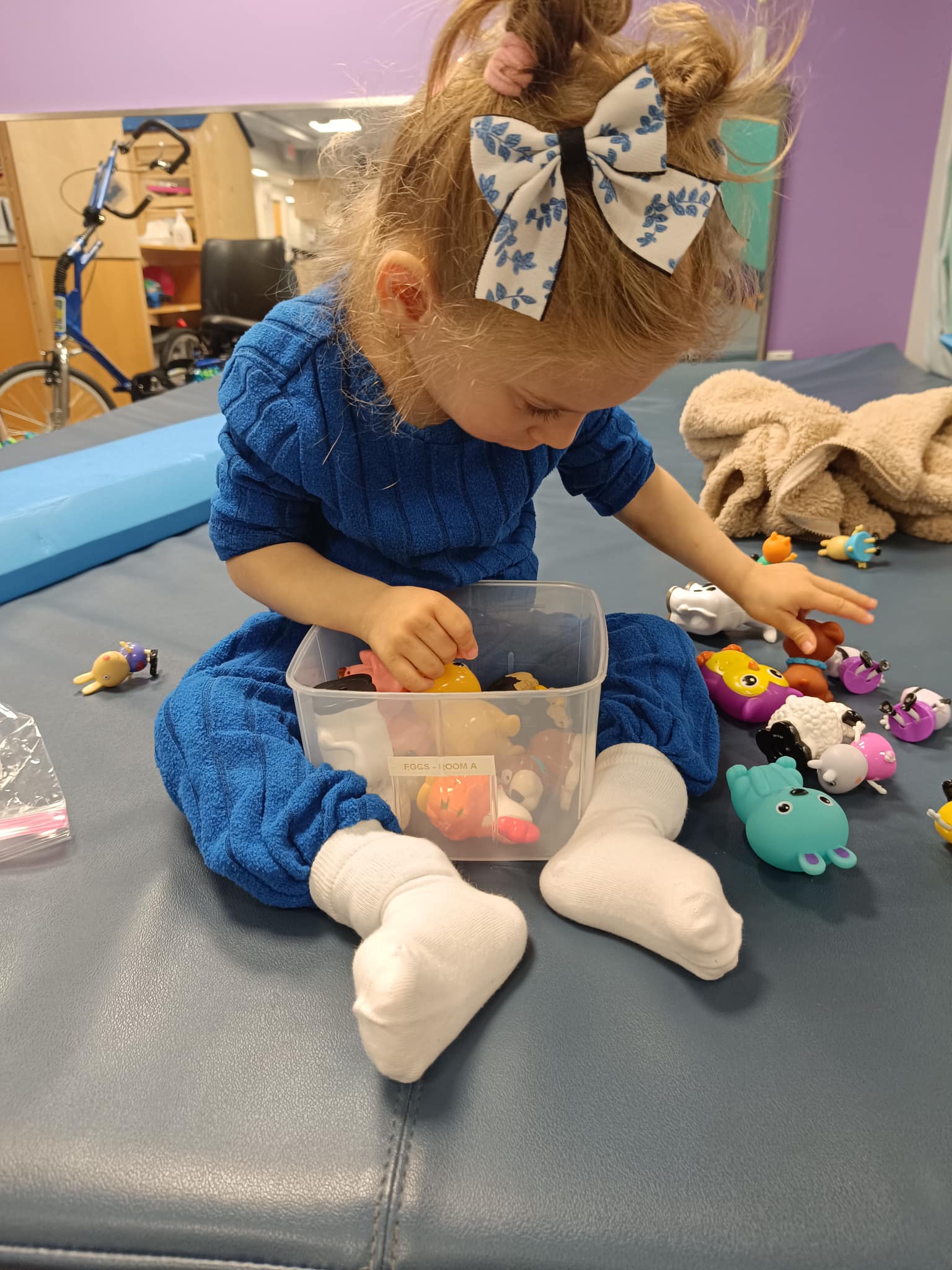 „În materie de achiziții motorii, ca rezultat al intervenției, Eliza poate să: stea în funduleț mai ușor, să plece în patrupedie mai ușor, să își folosească mâinile în motricitatea fină mult mai ușor și mai eficient. De asemenea, Eliza reușește să pășească folosind cadrul de mers” – povesteşte Ema Stancu.