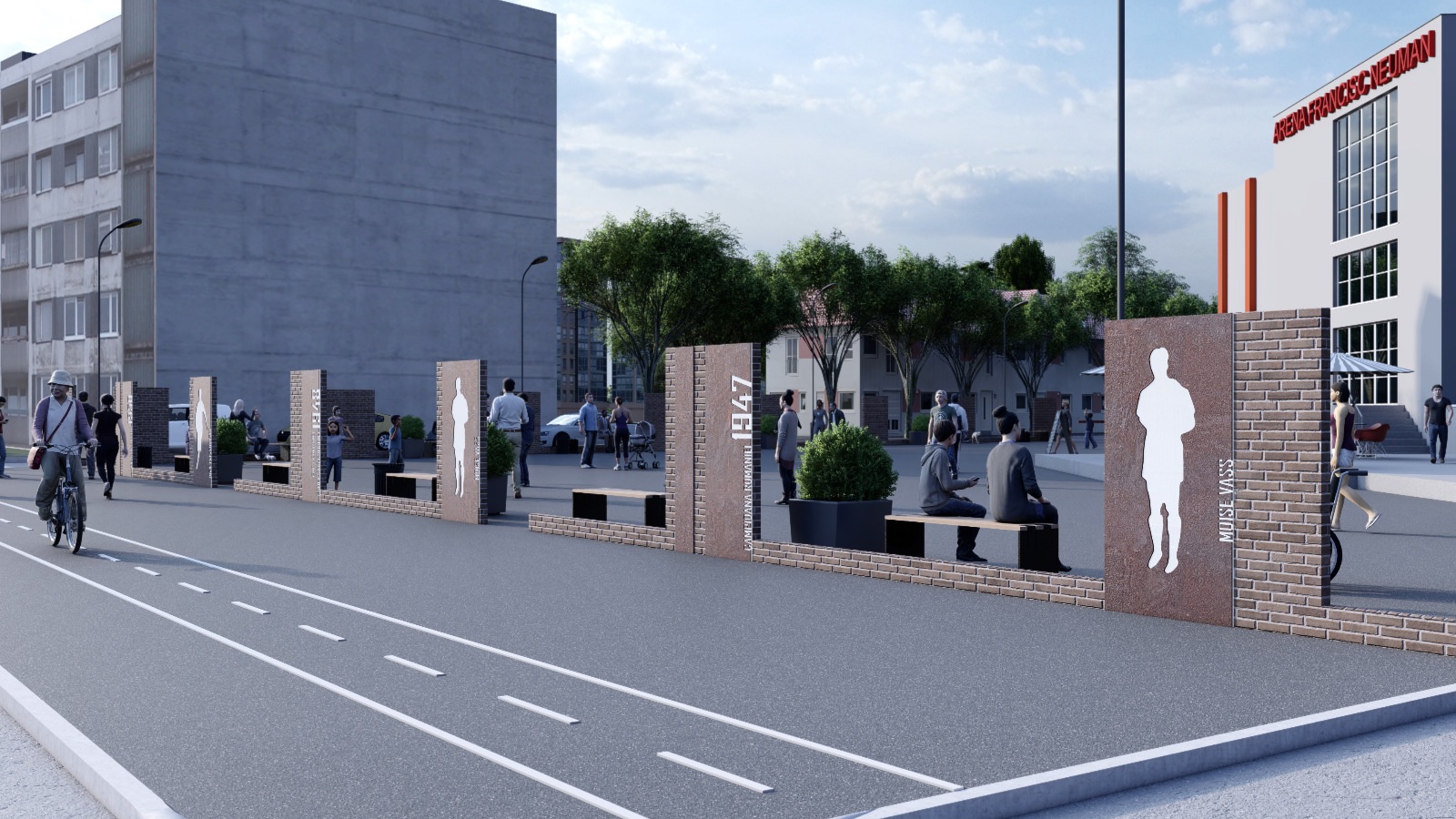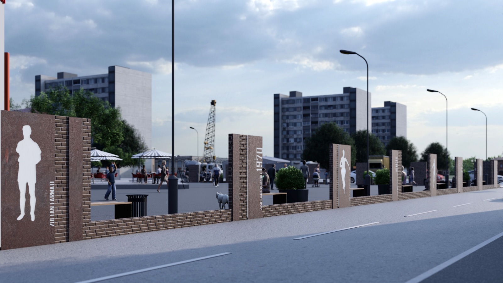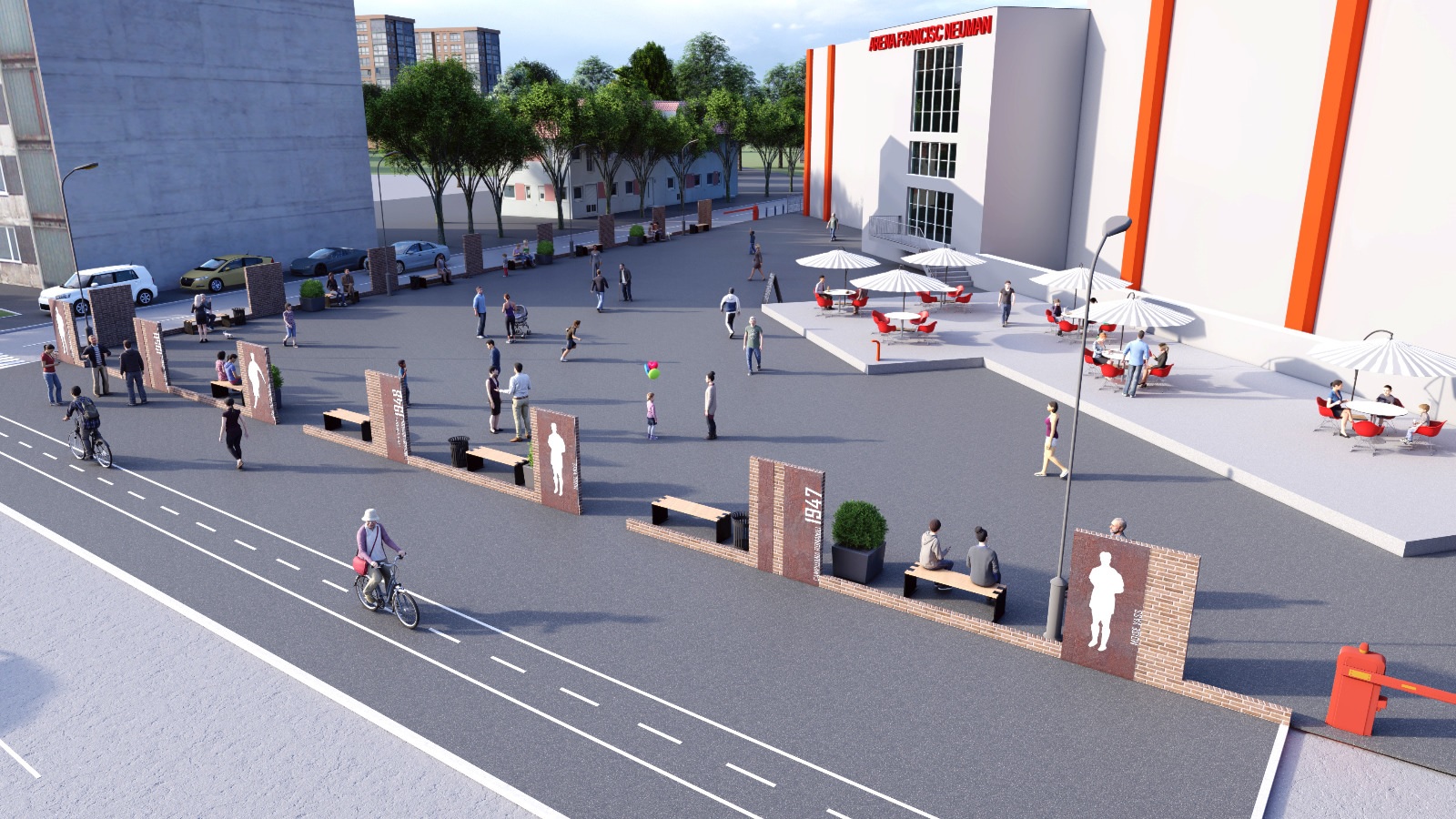 Soluţia găsită pentru delimitarea piaţetei constă într-un „zid artistic” format din mai multe panouri în care sunt prezentate momente importante din istoria Clubului UTA (succese semnificative, jucători reprezentativi). Este o delimitare simbolică a scuarului, spaţiul rămânând practic deschis. Edilul a precizat că „arhitecţii din Primărie lucrează acum la această propunere de transformare a spaţiului din faţa stadionului, pentru a-l face mai primitor şi pentru a câştiga piaţeta aceea de acolo, din mijloc, pentru public.” Într-o etapă ulterioară, Primăria plănuieşte amenajarea unei suprafeţe cu „stele ale fotbalului arădean încastrate în teren”, după modelul „Hollywood Walk of Fame” (Aleea Celebrităţilor de la Hollywood).