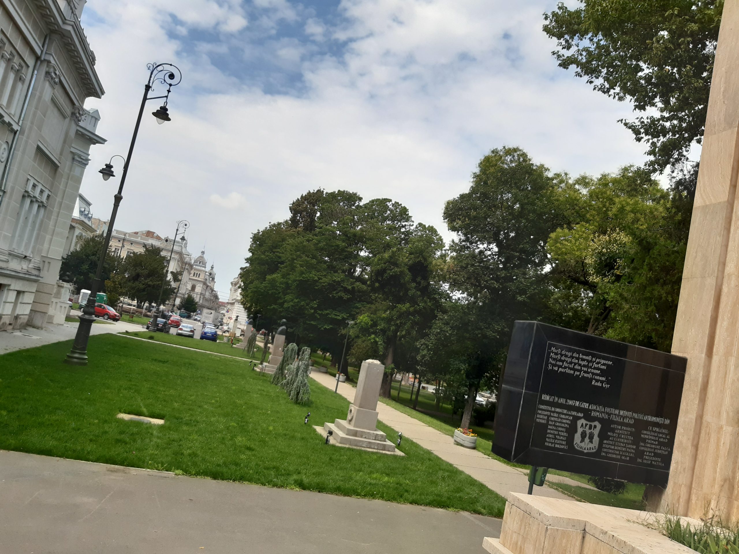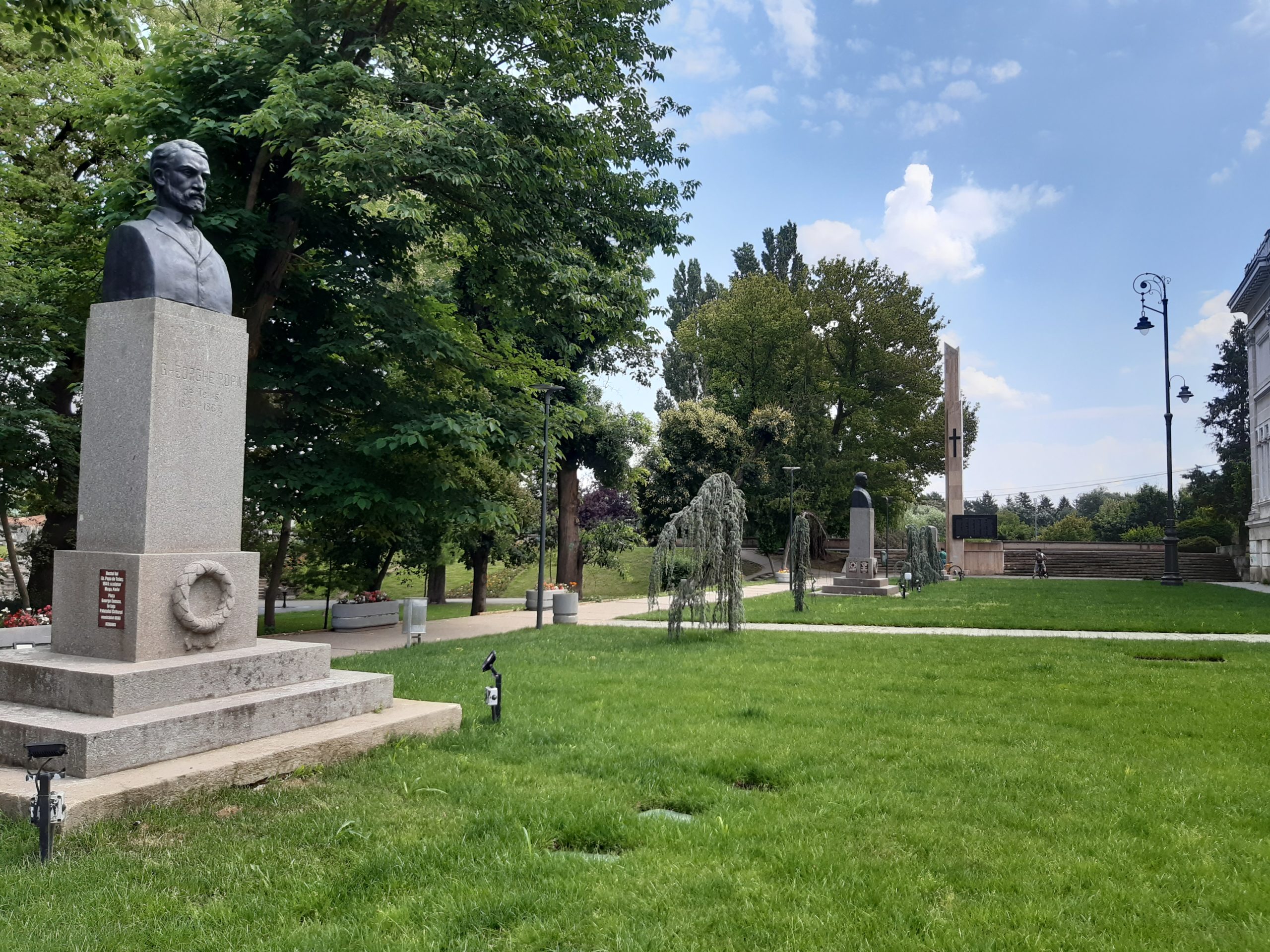 ARAD. „Noroc” cu furtul bustului de bronz al lui Ioan Rusu Şirianu, că aşa s-a descoperit că cele şapte monumente de lângă Palatul Cultural şi terenul pe care acestea se află sunt… ale nimănui!