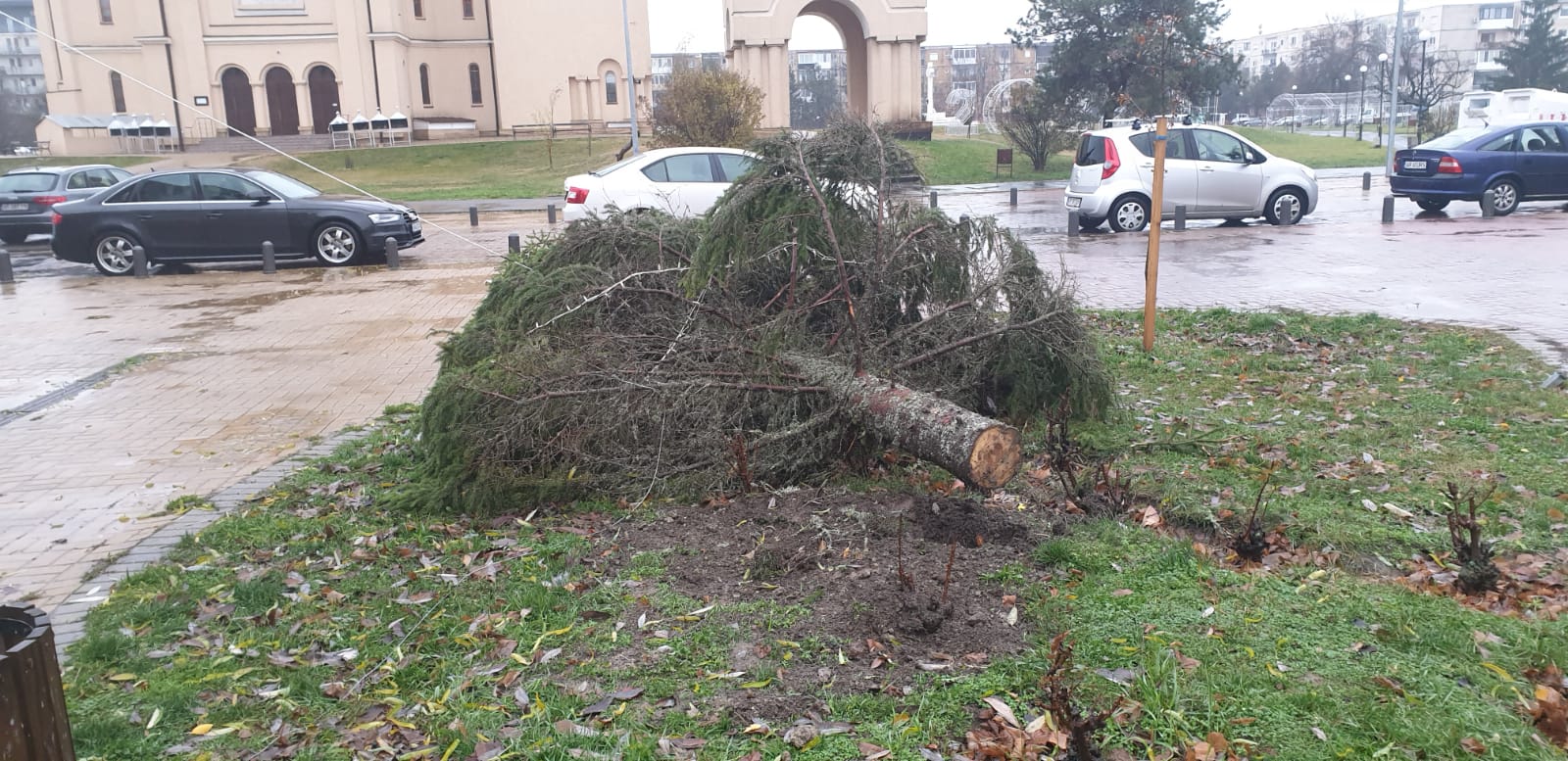 La nici o oră după publicarea articolului pe siteul nostru, primarul Călin Bibarț a făcut un rond de zi, acțiune cu care se identifică de ceva vreme, în care a vizat tocmai problema brazilor care au cedat în fața vântului. Acesta a precizat, postându-se în vecinătatea bradului din Aradul Nou, pe care muncitorii se chinuiau să-l pună înapoi în picioare, următoarele: „Am avut vânt de peste la 70 de km la oră, azi noapte și de dimineață. Ne-a pus la pământ mai mulți din brazi pregătiți de Crăciun. La Intim l-am pus înapoi. În Avram Iancu încă e jos, acum suntem în Aradul Nou, îl montează și pe ăsta și să sperăm că până diseară îi punem înapoi pe toți, deși vântul bate în continuare tare și ploua tare. Dar asta este: vremea întotdeauna e peste noi, uneori și vremurile. Ultimul an în care ne mai chinuim cu din ăștia naturali! Numai dureri de cap, plus băgat de vină”, a punctat primarul Călin Bibarț.