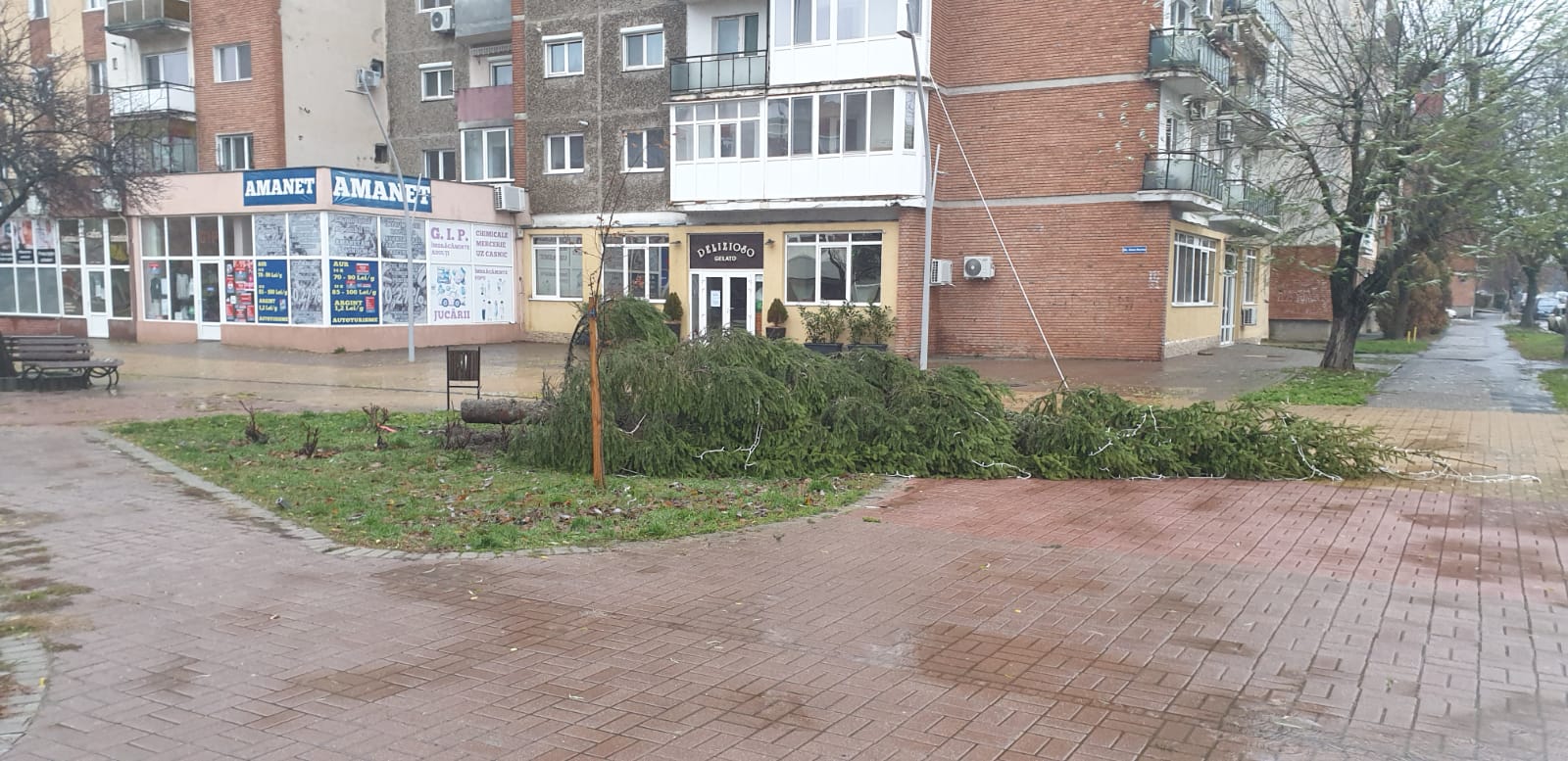 La nici o oră după publicarea articolului pe siteul nostru, primarul Călin Bibarț a făcut un rond de zi, acțiune cu care se identifică de ceva vreme, în care a vizat tocmai problema brazilor care au cedat în fața vântului. Acesta a precizat, postându-se în vecinătatea bradului din Aradul Nou, pe care muncitorii se chinuiau să-l pună înapoi în picioare, următoarele: „Am avut vânt de peste la 70 de km la oră, azi noapte și de dimineață. Ne-a pus la pământ mai mulți din brazi pregătiți de Crăciun. La Intim l-am pus înapoi. În Avram Iancu încă e jos, acum suntem în Aradul Nou, îl montează și pe ăsta și să sperăm că până diseară îi punem înapoi pe toți, deși vântul bate în continuare tare și ploua tare. Dar asta este: vremea întotdeauna e peste noi, uneori și vremurile. Ultimul an în care ne mai chinuim cu din ăștia naturali! Numai dureri de cap, plus băgat de vină”, a punctat primarul Călin Bibarț.