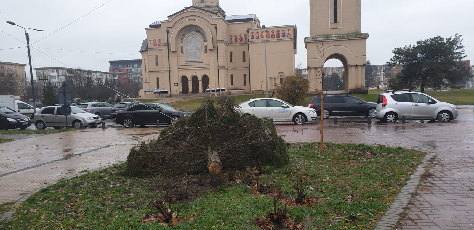Și in Piata Avram Iancu,au ous ditamaiu de brad de vre o…7+10m,au săpat o groapa de 20cm……normal ca sambata noaptea,a predat salopeta,acum va fi împodobit de pe “trotuar”
