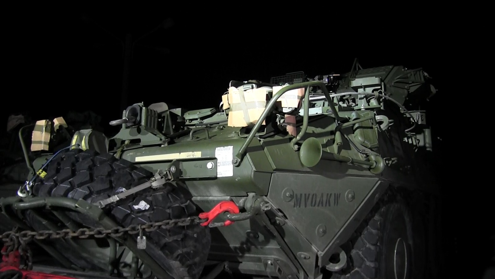 Convoiul format din transportoare blindate și echipament militar a intrat în vamă printr-un culoar special. Toate camioanele au oprit în parcarea Punctului de Trecere a Frontierei Nădlac 1, pentru ca șoferii, români și polonezi, să se poată odihni.