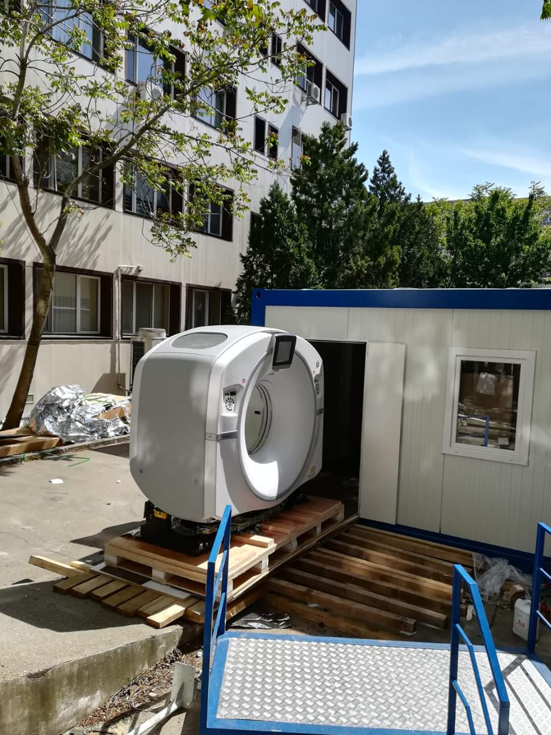 În prezent se lucrează la instalarea Computerului Tomograf într-un container special, care a fost amplasat zilele trecute în incinta unității medicale. Următorul pas va fi obținerea, în regim de urgență, a aprobărilor de funcționare de la CNCAN după care va fi pus în funcțiune. De menționat este faptul că, la finalul pandemiei cu acest tomograf vor putea fi examinate, în regim normal, și alte patologii. Valoarea aparatului se ridică la 3.7 milioane de lei și a fost achiziționat de către Consiliul Județean Arad.