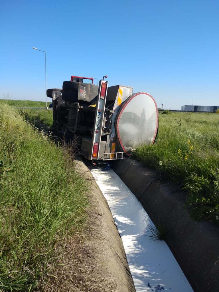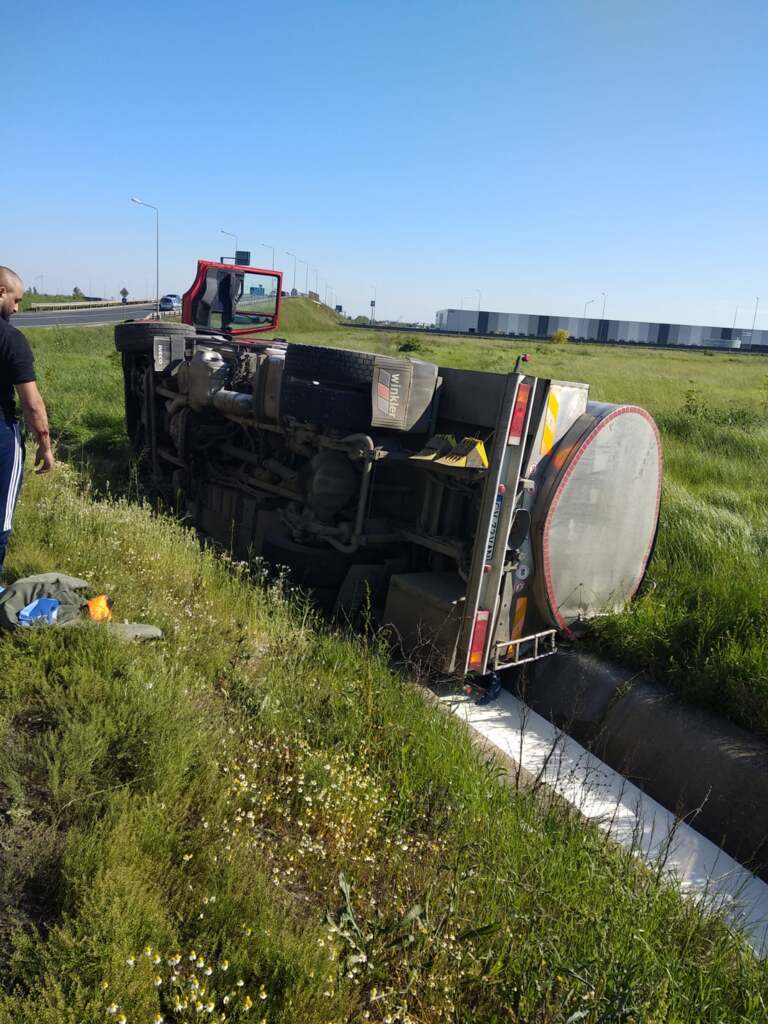 Potrivit informațiilor pe care le deținem, cisterna transporta lapte de capră colectat de la fermieri din zona Aradului, destinația fiind o fabrică de procesare din județul Brașov. Paguba s-ar ridica la aproximativ 60 de mii de lei, iar transportul nu ar fi fost asigurat. Accidentul s-ar fi petrecut după ce remorca a intrat în balans după intrarea în sensul giratoriu.