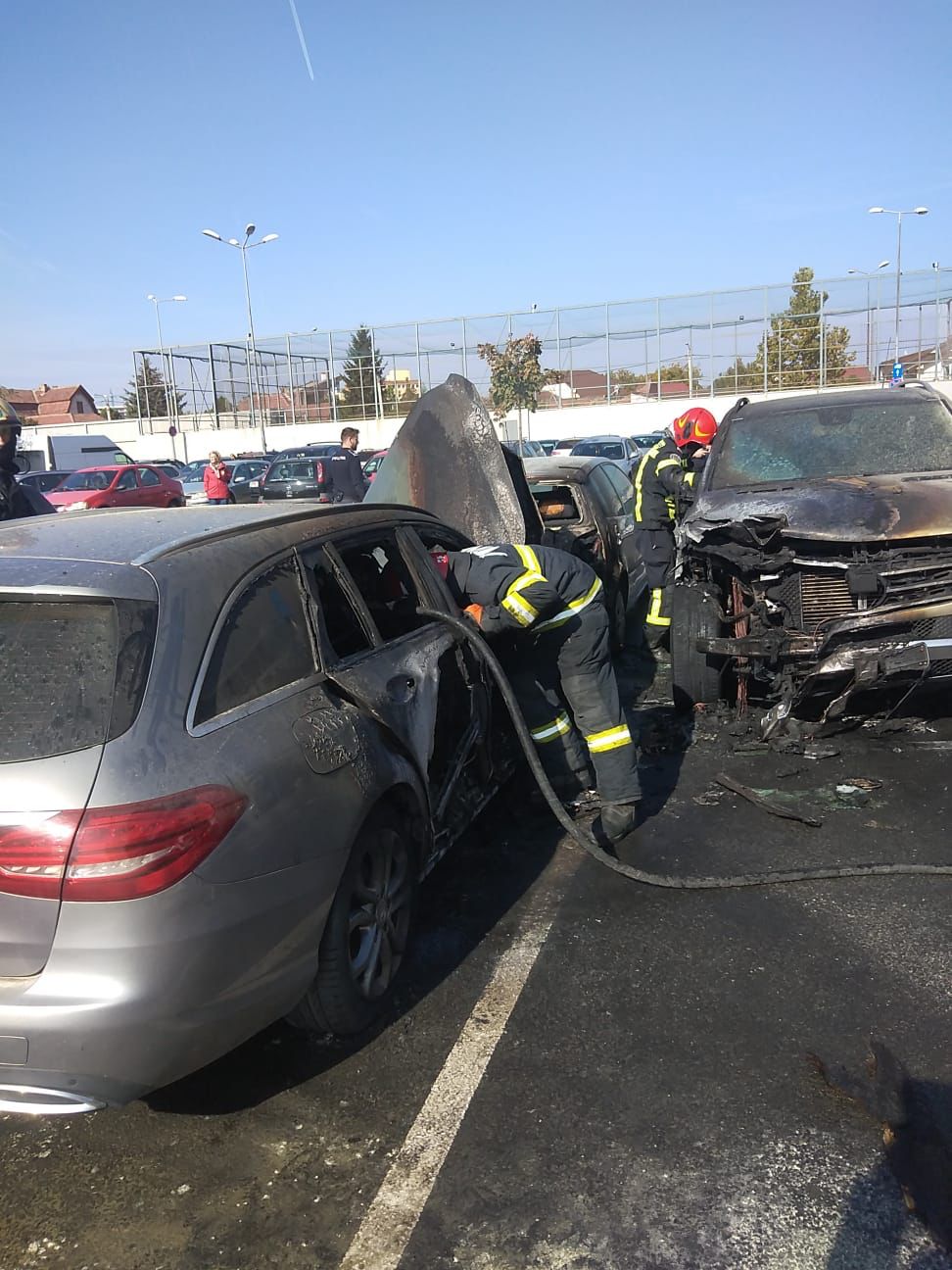Pompierii din cadrul Detașamentului Arad au fost solicitați miercuri, în jurul orei 12:00, să intervină pentru stingerea unui incendiu izbucnit la un autoturism aflat în parcarea supermarketului Kaufland de pe Banu Mărăcine.“La sosirea echipajelor de intervenție incendiul se manifesta prin ardere generalizată la nivelul unui autoturism parcat, flăcările propagând-se la două autoturisme aflate în imediat proximitate a acestuia. Incendiul a fost lichidat prompt de către pompierii, fără a se înregistra victime, însă autoturismul a fost afectat în proporție de 80%, iar cele două autoturisme parcate în apropiere, au ars în proporție de 20%, respectiv 40%”, transmite Ruxandra Klein, purtătorul de cuvânt al Inspectoratului pentru Situații de Urgență Arad.