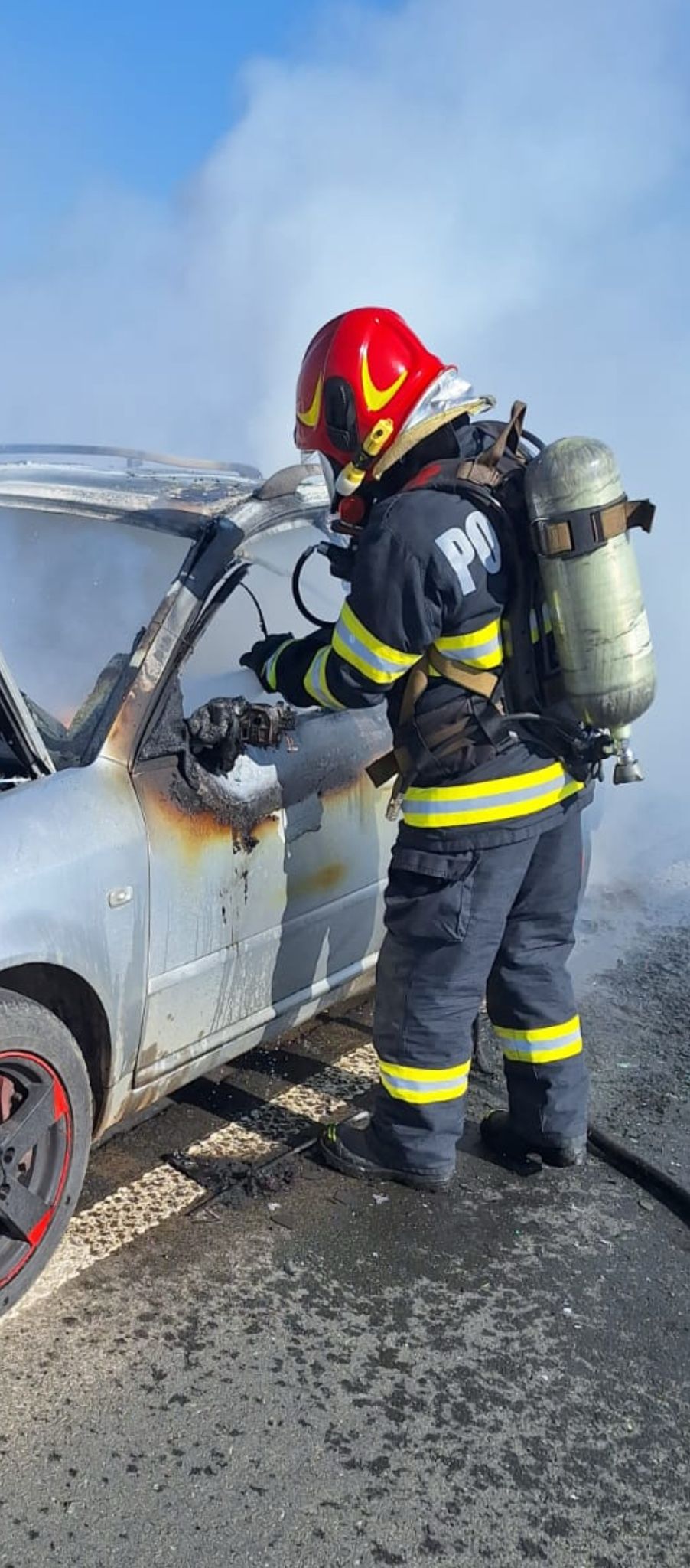 „Incendiul, care s-a manifestat prin ardere generalizată, a fost stins, autoturismul fiind afectat în proporție de 90%. Din fericire, nu s-au înregistrat victime. Șoferul a reușit să oprească și să părăsească la timp autoturismul, care a luat foc în timpul mersului. Cauza probabilă de producere a incendiului a fost stabilită ca fiind scurtcircuitul electric”, au transmis pompierii.