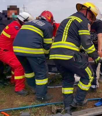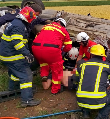 UPDATE 2. La o primă evaluare medicală, şoferul autoturismului – care rămăsese încarcerat – a fost diagnosticat cu politraumatisme şi leziuni neurologice.