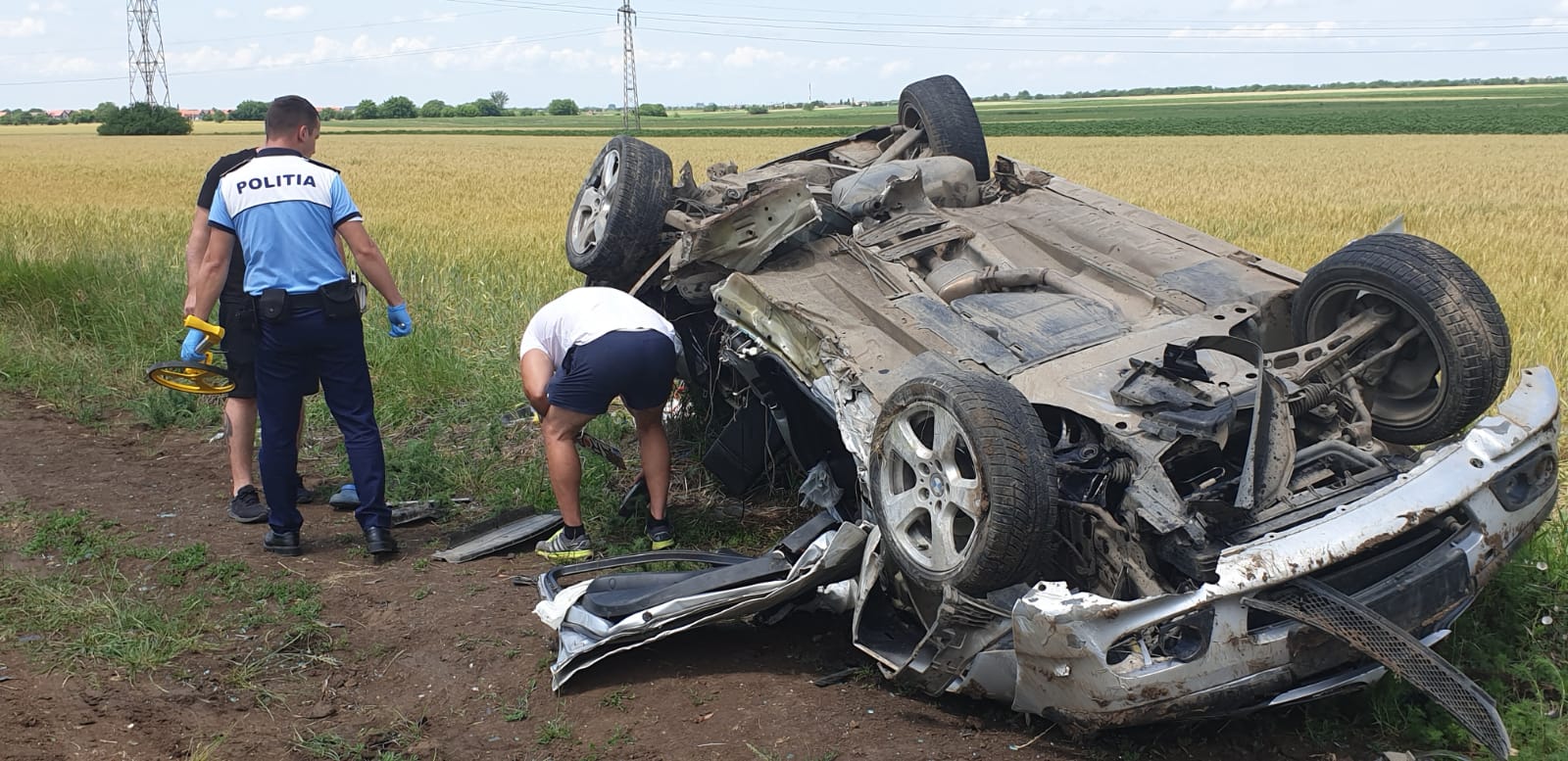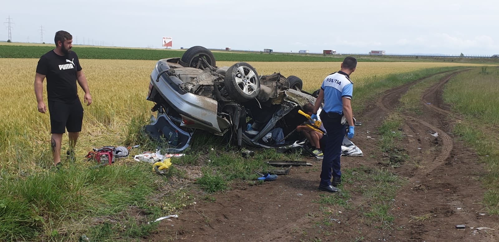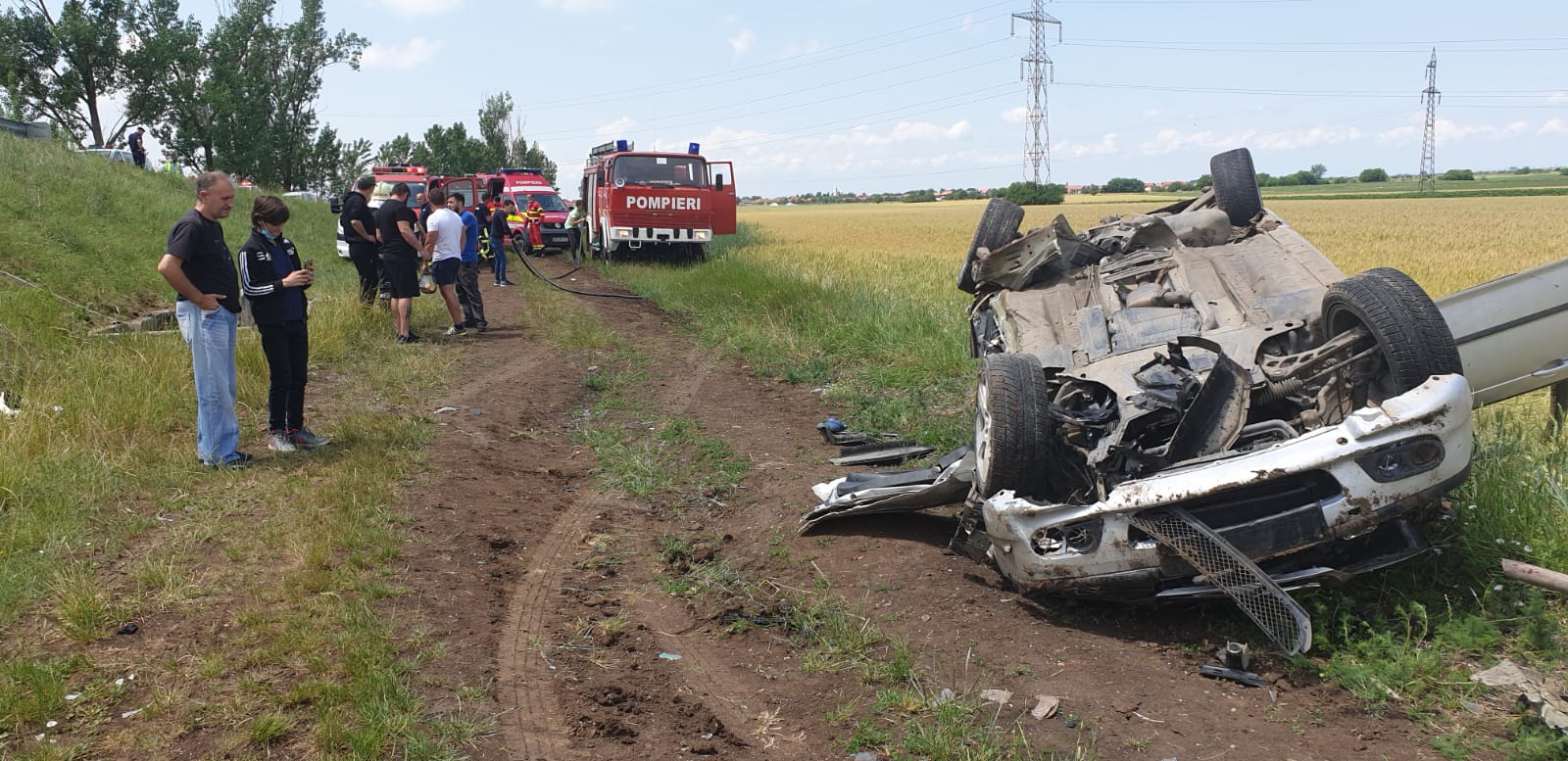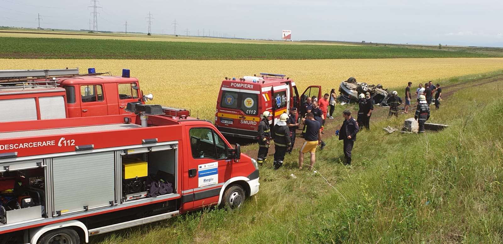 Autoturismul, în care se aflau patru persoane, s-a răsturnat de pe viaduct, în zona localităţii Cruceni, comuna Şagu. Potrivit primelor informaţii, trei persoane au reuşit să iasă singure din maşină, în timp ce o victimă a rămas înarcerată.