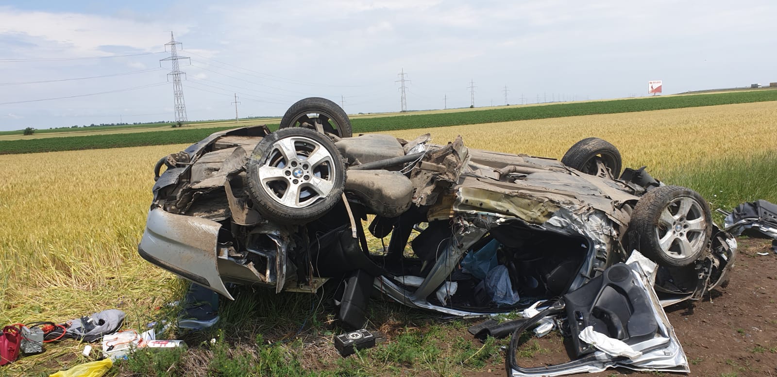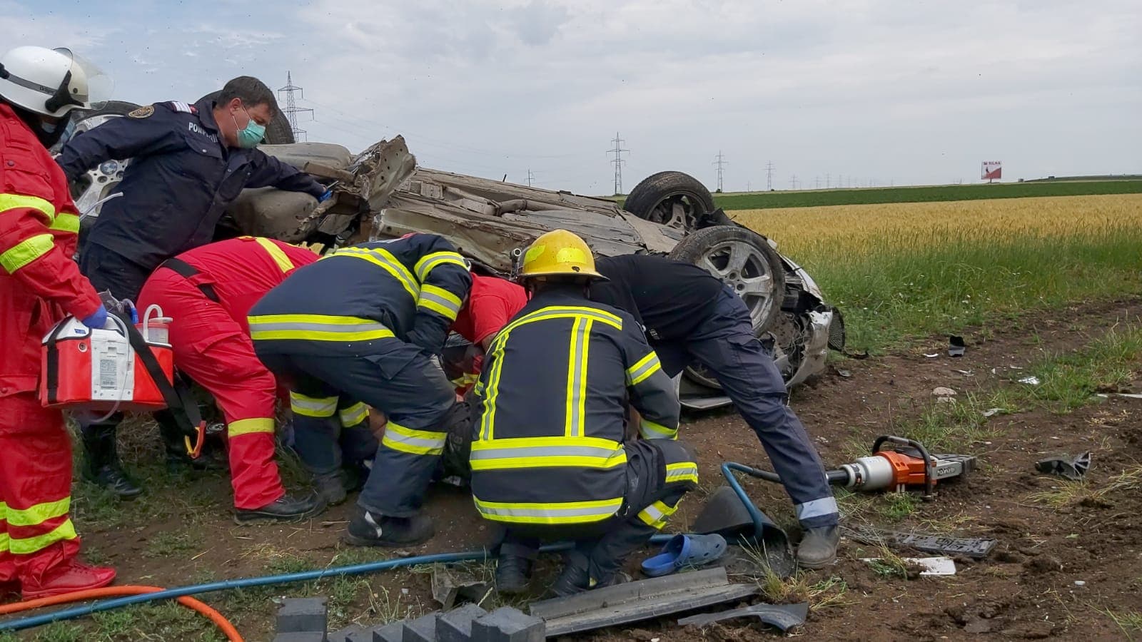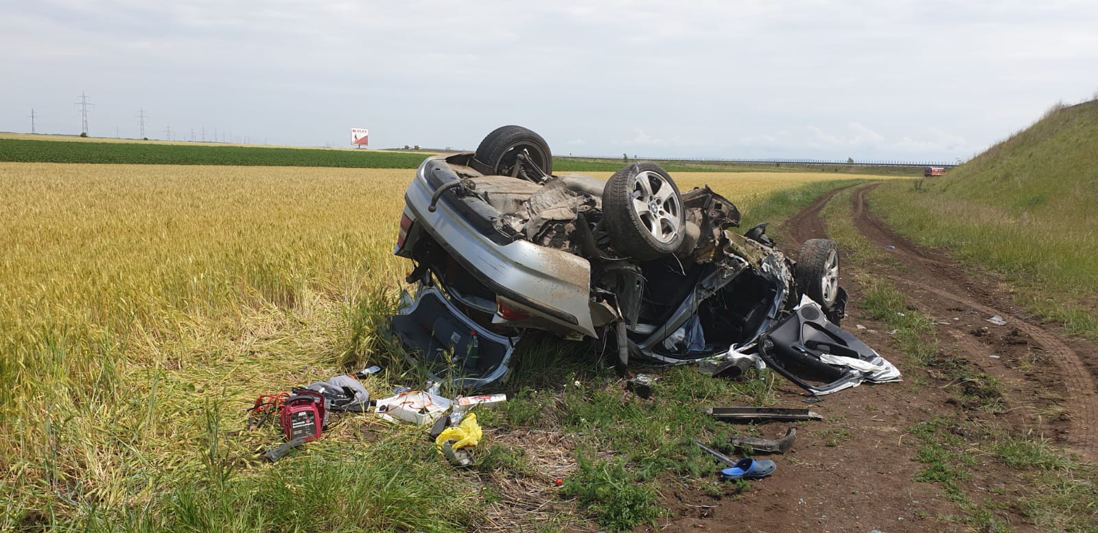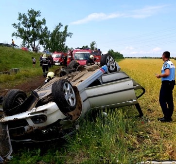 Autoturismul, în care se aflau patru persoane, s-a răsturnat de pe viaduct, în zona localităţii Cruceni, comuna Şagu. Potrivit primelor informaţii, trei persoane au reuşit să iasă singure din maşină, în timp ce o victimă a rămas înarcerată.