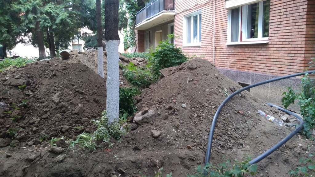 Să nu mai luăm în calcul, sau să luăm, de fapt, mormanele de pământ rezultate în urma săpăturilor și care ajungeau până la nivelul ferestrelor de la parter. Iar trotuarele, refăcute în urmă cu trei ani, după cum spun locuitorii zonei, au fost parțial distruse.