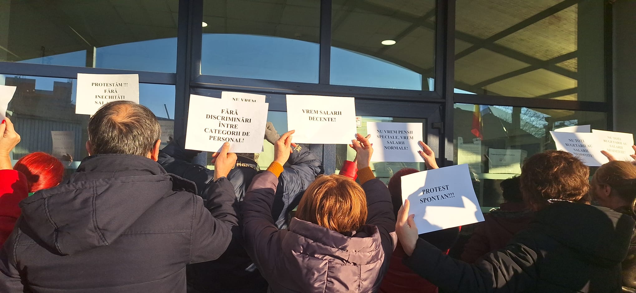 Nemulțumirile sunt aceleași pentru care oamenii protestează de zile bune… chiar dacă au hotărâri judecătorești definitive și irevocabile și aprobările administrative aferente, tot nu își primesc salariile complete.