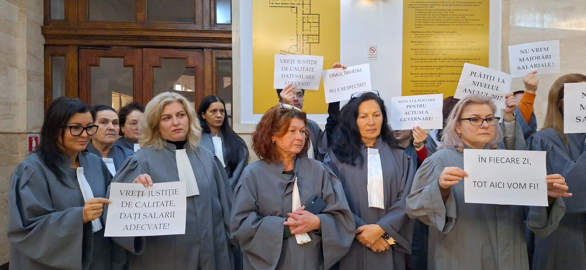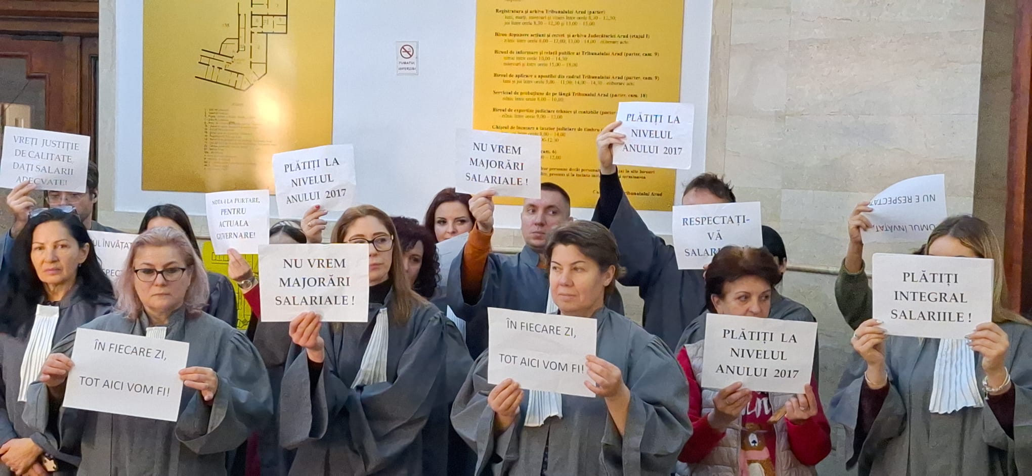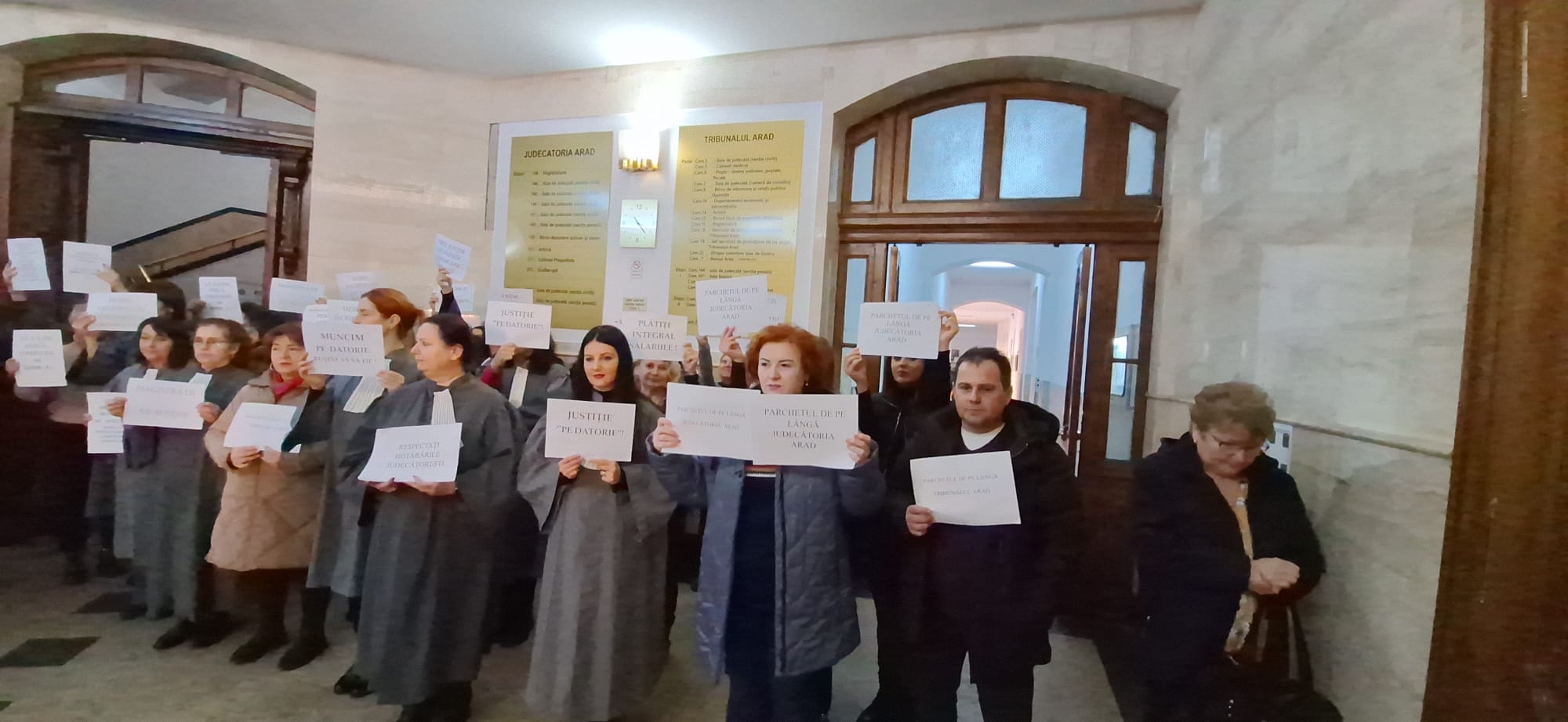 Zeci de grefieri de la Tribunalul, Judecătoria și Parchetele aferente din Arad au protestat, din nou spontan, ieșind pe holul principal de la intarea in Tribunal.