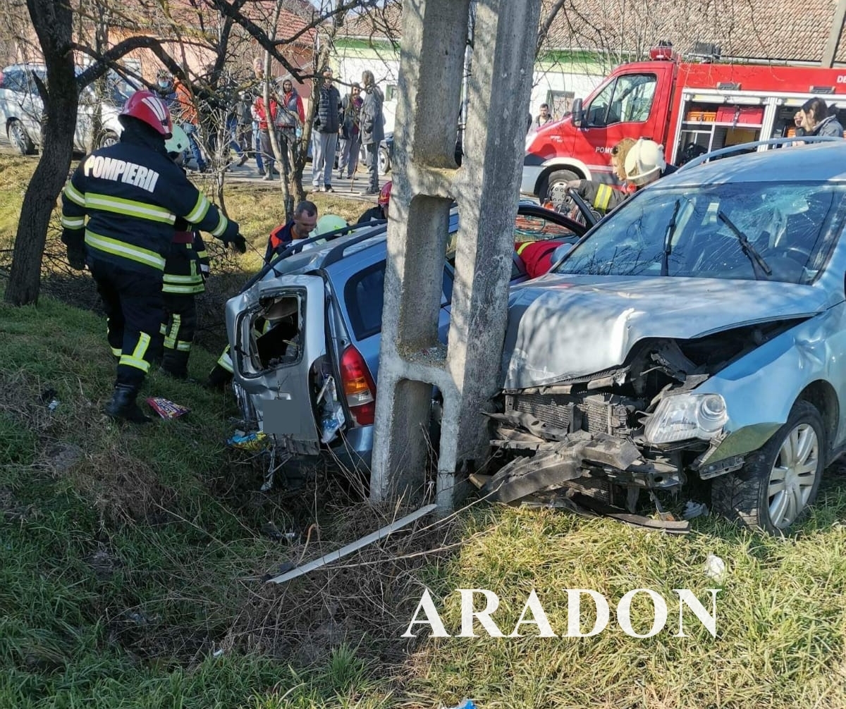 UPDATE: Potrivit ISU Arad „în urma accidentului au rezultat două victime conștiente, cooperante, dintre care una încarcerată. Pompierii au acționat pentru extragerea acesteia din autoturism, iar ulterior victima a fost preluată de către echipajul medical SAJ și transportată la spital pentru îngrijiri și investigații medicale suplimentare. Cea de-a doua victimă a fost evaluată medical la locul evenimentului și transportată la spital de către echipajul medical al elicopterului SMURD. SVSU Pecica a acționat pentru asigurarea măsurilor de prevenire și stingere a incendiilor la locul evenimentului”.
