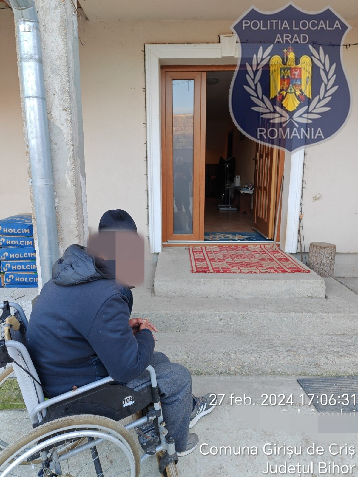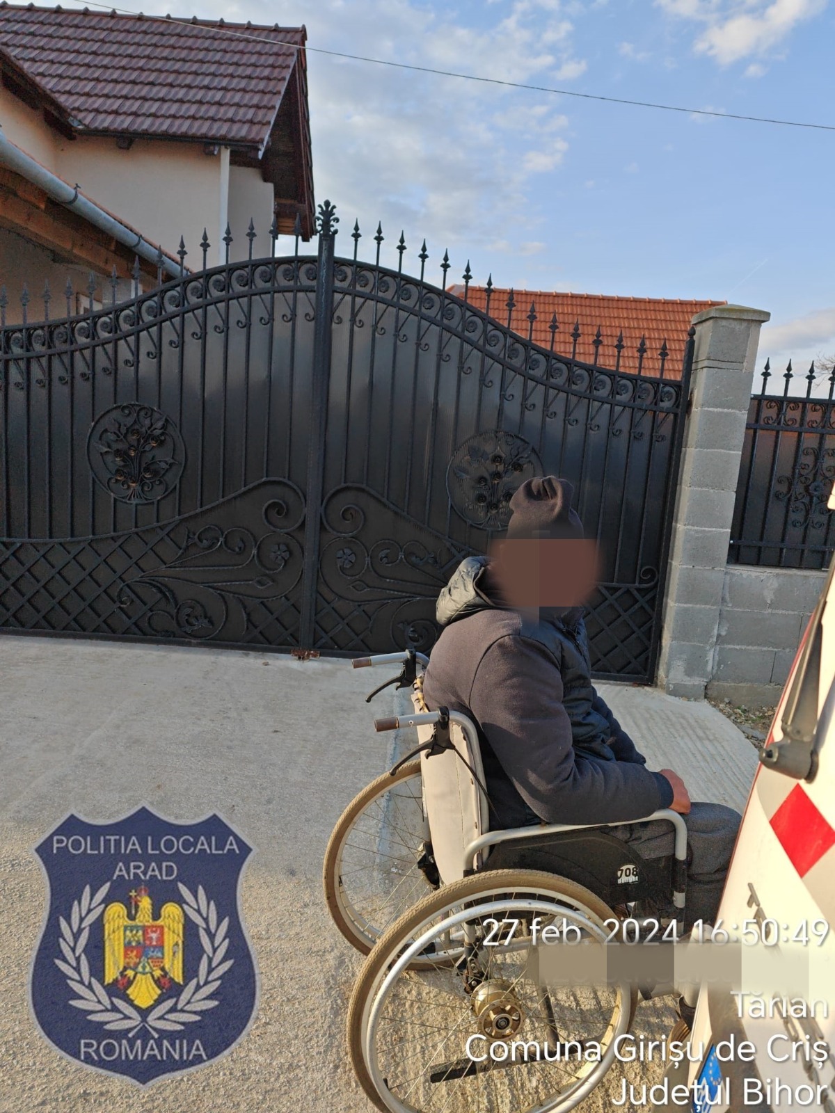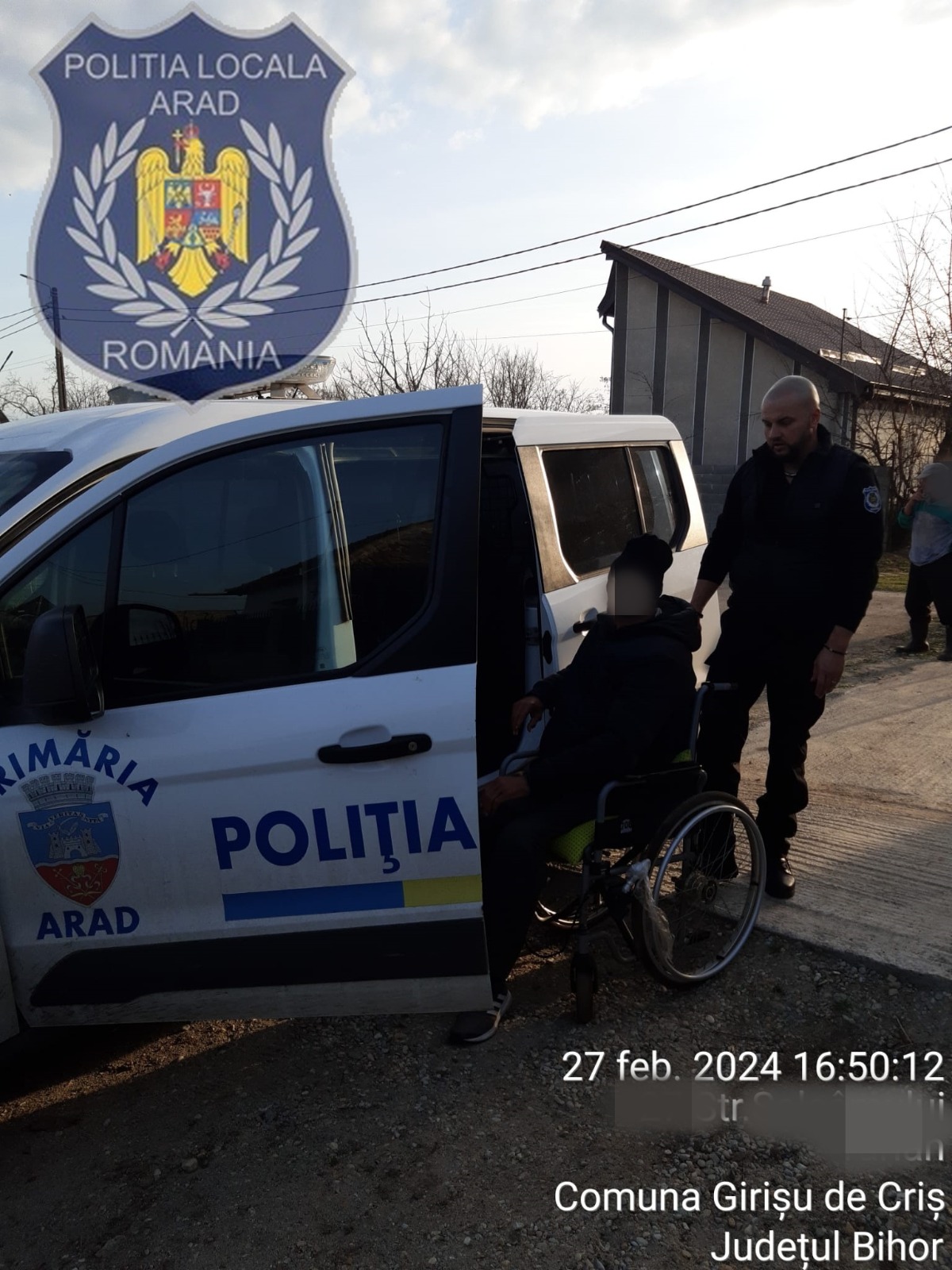 „În data de 27.02.2024, o patrulă de ordine publică din cadrul Direcției Generale Poliția Locală Arad a condus, cu autoutilitara din dotare, la locul de domiciliu din județul Bihor, o persoană fără adăpost aflată în municipiul Arad încă din anul 2012”, spune Poliția Locală.Este vorba despre un bărbat în vârstă de 56 de ani care pe timpul verii „locuia” într-o mașină abandonată în apropierea a unui supermarket din cartierul Micălaca, iar iarna apela la serviciile oferite de Adăpostul de noapte al Direcției de Asistență Socială. Situația sa este agravată și de o afecțiune care îi creează dificultăți în deplasare, făcându-l dependent de scaunul cu rotile.“Problemele pe care le-a întâmpinat pe durata prezenței în Municipiul Arad l-au plasat în postura de a fi sancționat de 45 de ori de polițiștii locali, pentru nesocotirea în mod repetat a prevederilor Legii nr. 61/1991, republicată, pentru sancționarea faptelor de încălcare a unor norme de conviețuire socială, a ordinii și liniștii publice (consum de alcool pe domeniul public și apelarea în mod repetat la mila publicului), respectiv a Legii nr. 349/2002 pentru prevenirea și combaterea efectelor consumului produselor din tutun (fumat în mijloace de transport în comun). Cele mai multe fapte contravenționale au fost constatate în cartierul Micălaca și zona centrală”, mai spun cei de la Locală.