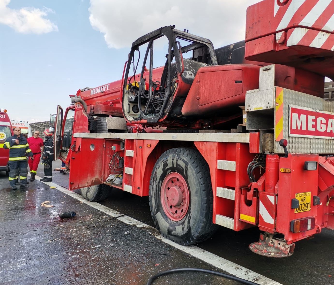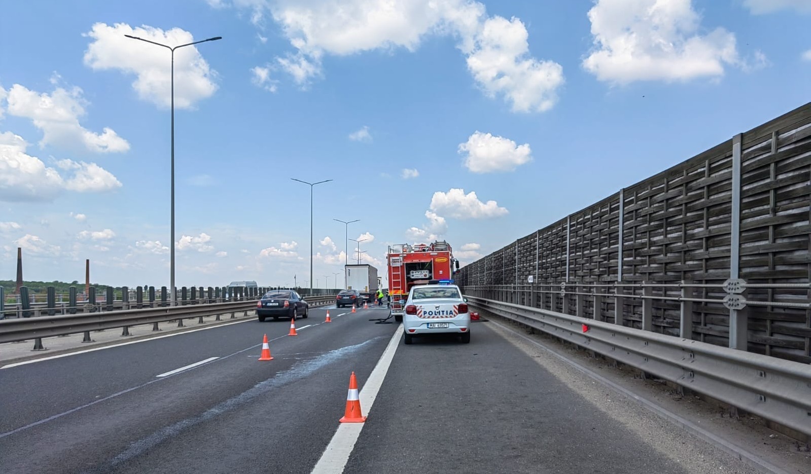 ARAD. Centrul INFOTRAFIC din Inspectoratul General al Poliției Române informează că pe „Autostrada A1 Deva-Nădlac, la kilometrul 541, mun. Arad, jud. Arad, un autovehicul a luat foc în mers, iar șoferul a coborât să-l stingă, moment în care a fost lovit de conducătorul unui autocamion, care nu a frânat la timp.
