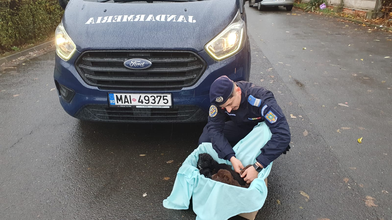 CHIȘINEU-CRIȘ. „În noaptea de 19 spre 20 noiembrie, în timp ce se afla în serviciu pe raza localității Chișineu-Criș, colegul nostru, sergent major Ionuț Ilie din cadrul Detașamentului 4 Jandarmi Chișineu-Criș, a găsit 8 cățeluși aruncați într-un sac la marginea drumului. Având în vedere ora târzie și faptul că aceștia păreau înfometați, colegul nostru i-a hrănit și a luat legătura cu medicul veterinar din localitatea respectivă. Astăzi, 20 noiembrie, cei 8 cățeluși au fost duși la Adăpostul pentru câini fără stăpân din localitatea Pecica pentru a fi îngrijiți. Felicitări colegului nostru pentru gestul făcut!”, au transmis reprezentanții Jandarmeriei Arad.