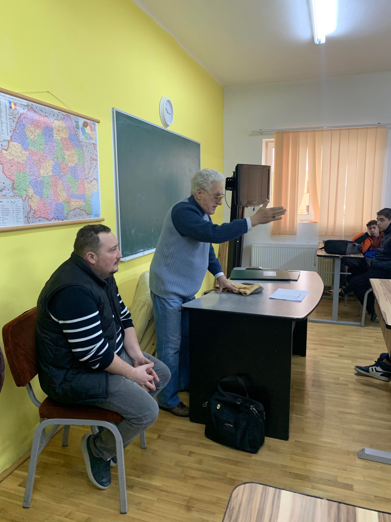 Prezent în mijlocul elevilor Școlii Profesionale ,,Astra”, profesorul Eugen D. Pădurean le-a prezentat acestora o parte din descoperirile sale arheologice prezentând detaliat descoperirea din 1971 a cetății de pământ de la Vladimirescu.