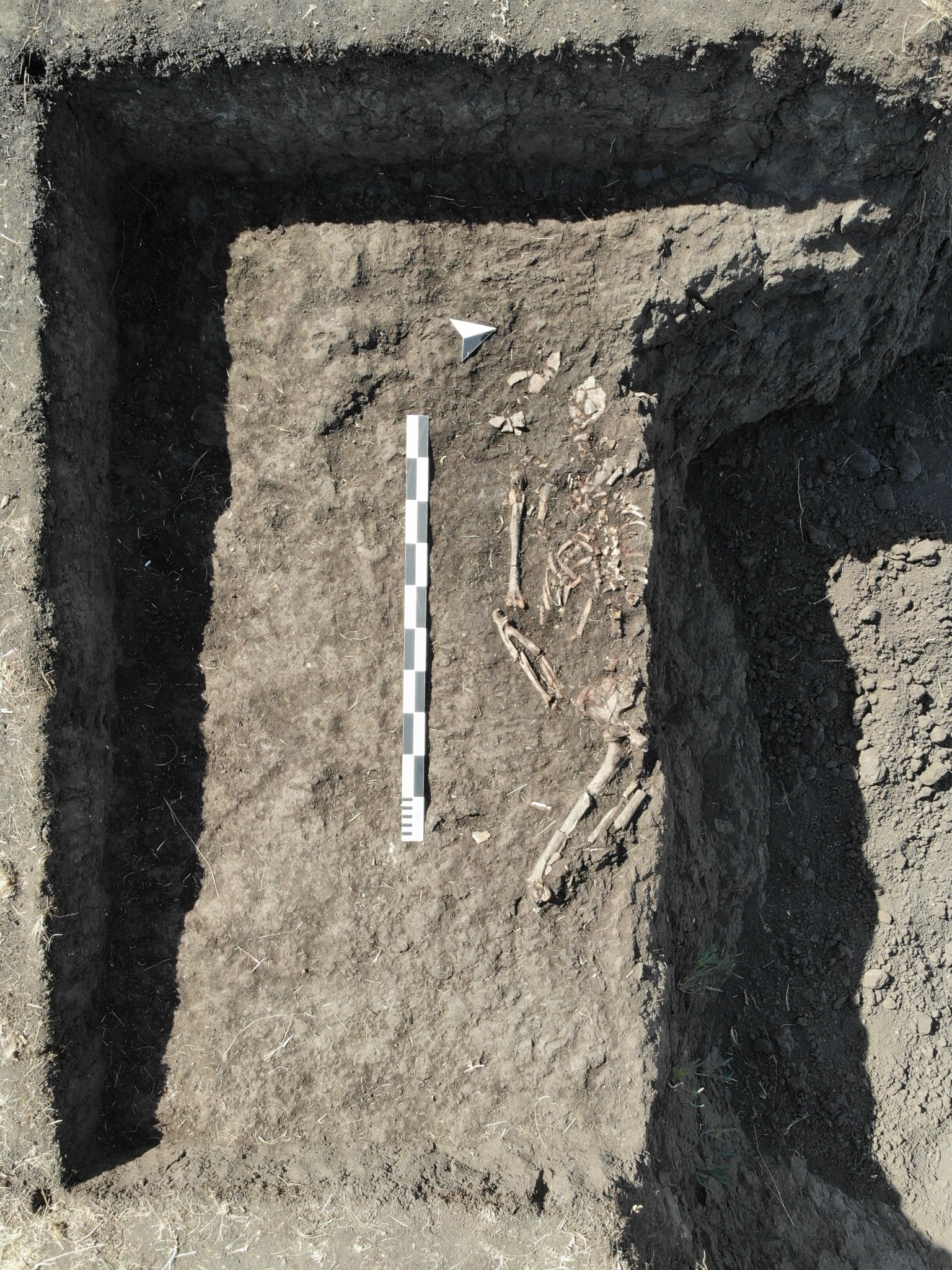 Ei bine, iată că au apărut și primele descoperiri. În urmă cu câteva zile arheologii au descoperit primele oseminte umane. „După o evaluare făcută prin mijloace non-intruzive (măsurători magnetometrice), cercetarea tumulului dintre satele Turnu și Variașu Mare a continuat, printr-o săpătură efectuată de echipa de arheologi a Complexului Muzeal Arad în zona în care distrugerile au scos la iveală câteva oseminte umane. Acestea se aflau la mică adâncime (cca 45 cm) față de cel mai înalt punct al tumulului; în urma săpăturii, s-a constatat că osemintele făceau parte dintr-un mormânt în care defunctul a fost așezat pe spate, cu picioarele chircite. Mormântul a fost săpat în mantaua tumulului, această practică de reutilizare a tumulilor funerari fiind întâlnită de-a lungul mai multor epoci. În lipsa unui inventar funerar, aprecierile cronologice pot fi făcute doar pe baza poziției defunctului, care în acest caz este una tipică pentru orizontul cronologic al epocii bronzului timpuriu (cca 3000-2500 î.Hr.)”, spun arheologii.