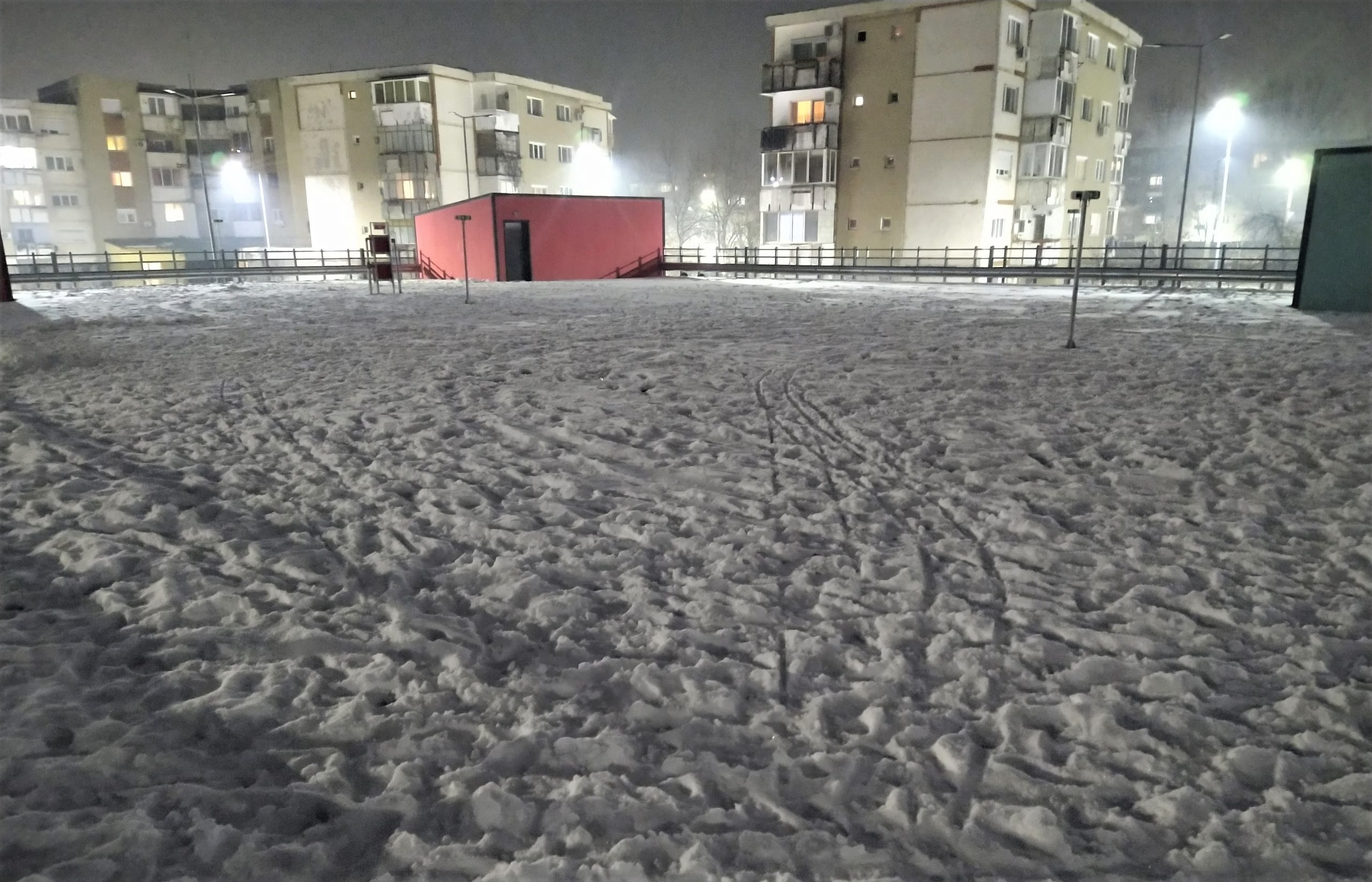 “În curtea blocului nu au unde să se joace copiii, pentru că sunt maşinile parcate. Această parcare este goală şi plină de zăpadă, îi lăsăm să zburde, să simtă şi ei că este iarnă”, spune un tată care îşi plimba copilul cu sania pe un Fast Park din Micălaca.