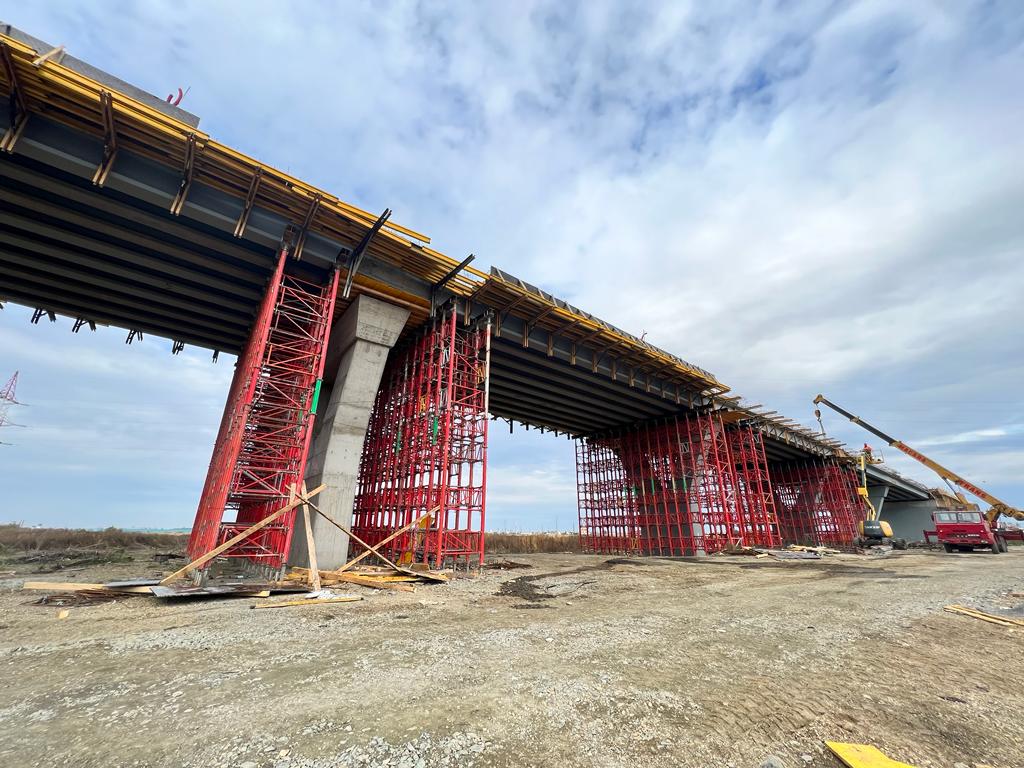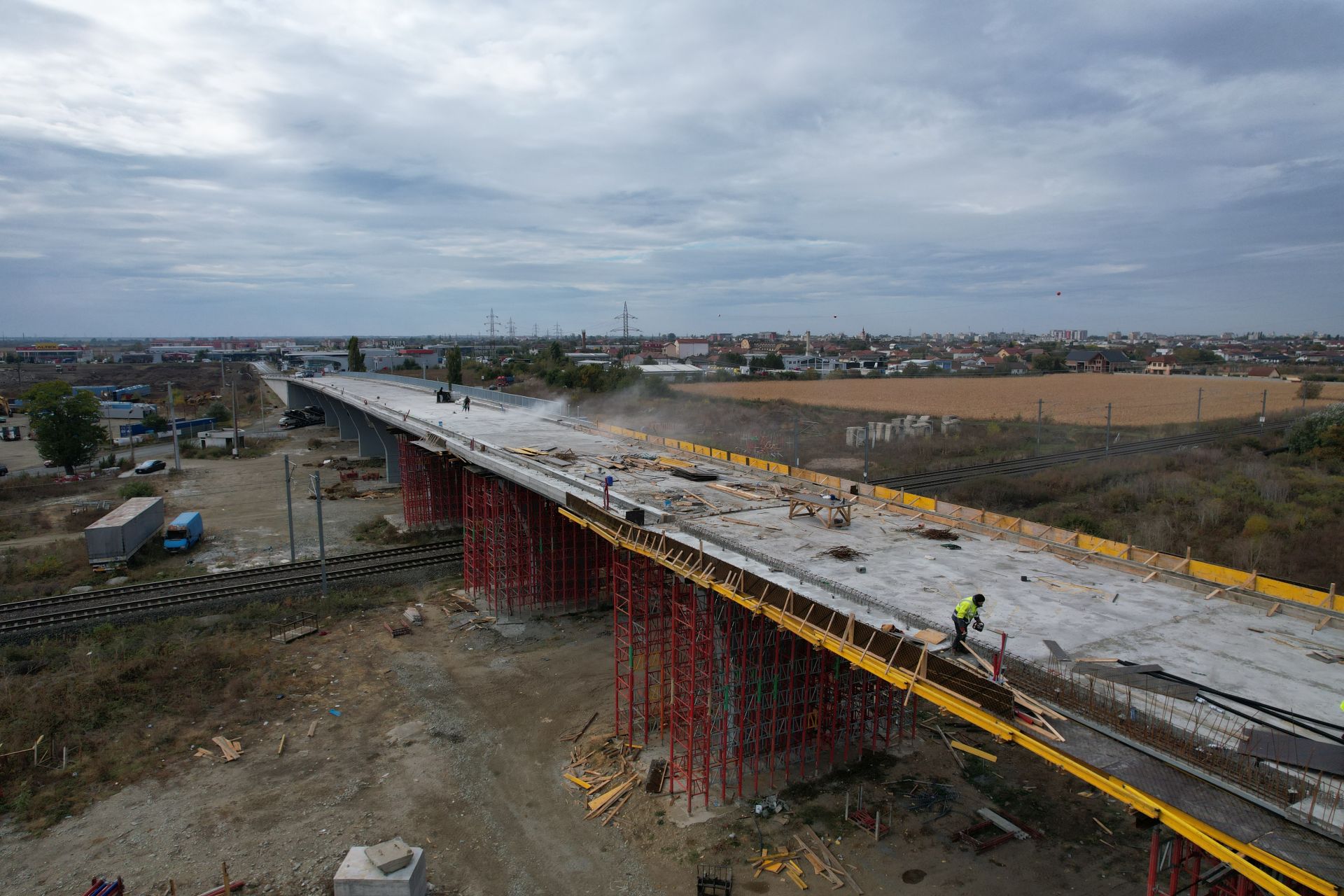 „La șantierul pasajului de pe centura de ocolire Arad (DN 7) peste CF Arad – București se lucrează în această perioadă la așternerea balastului stabilizat la rampa 1 și se continuă pe rampa 2, se montează parapet pietonal, se betonează consolele pentru trotuar și se pregătește intersecția cu DJ 709”, anunţă DRDP Timişoara.