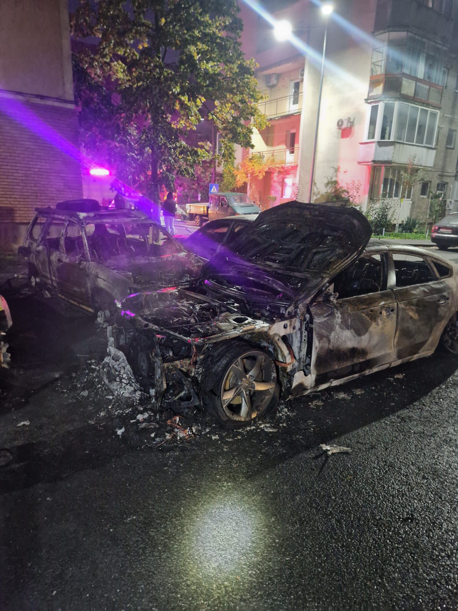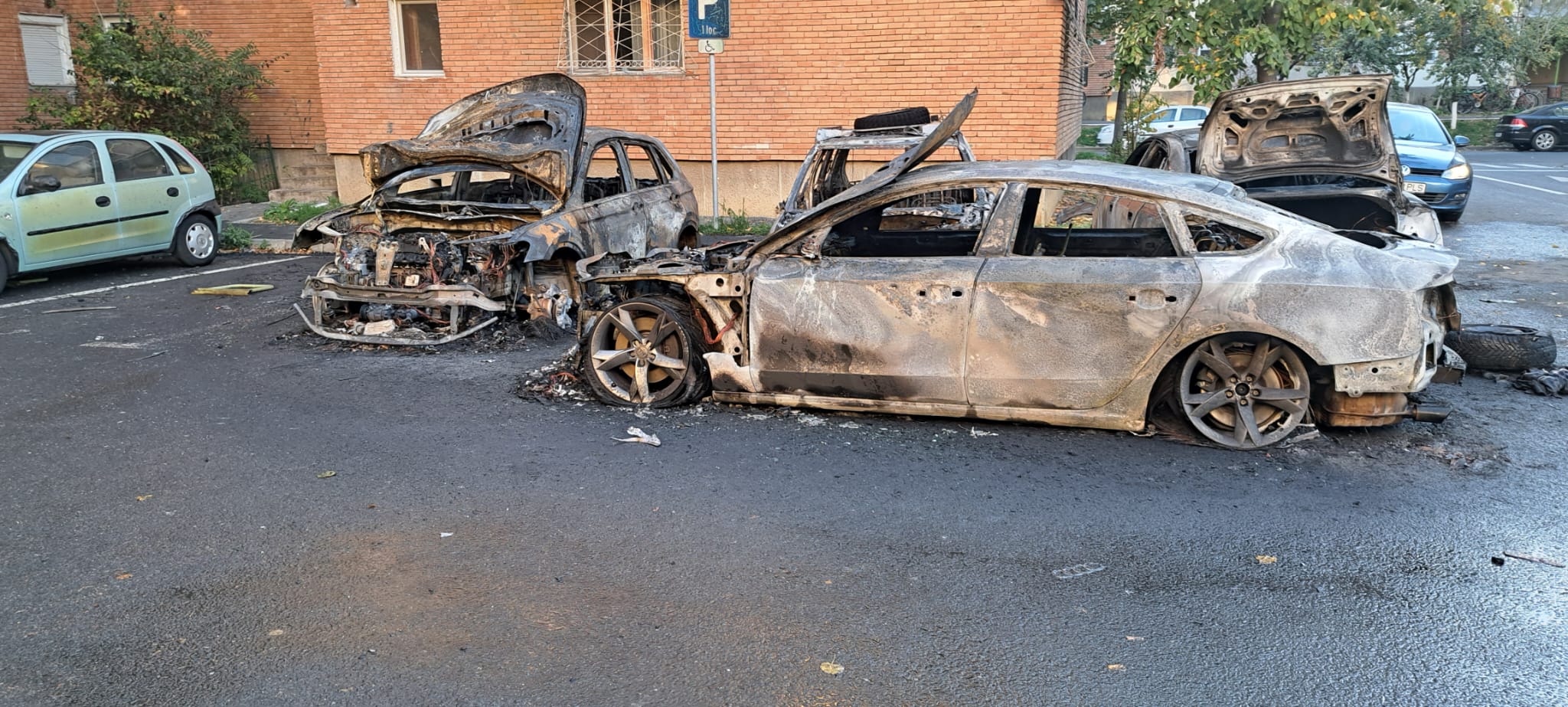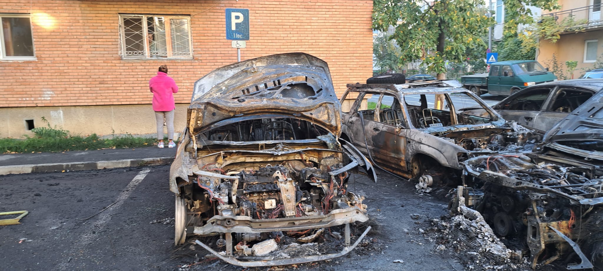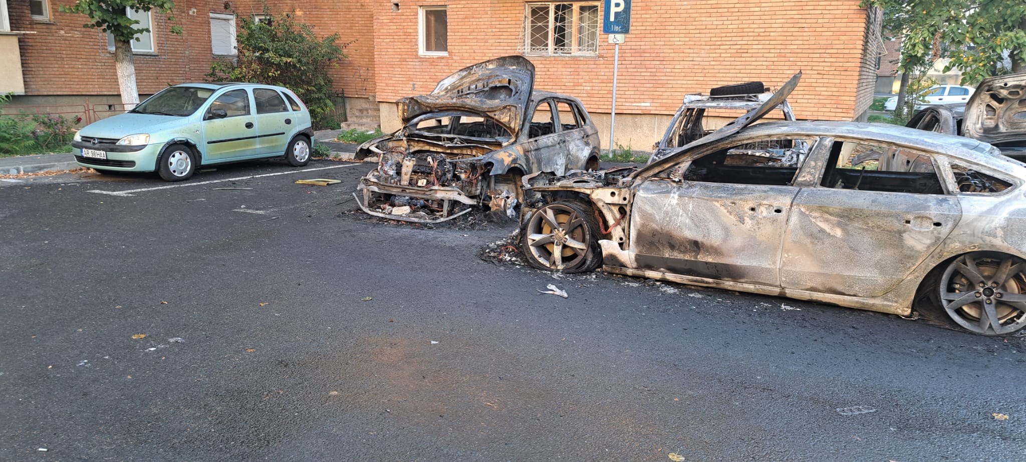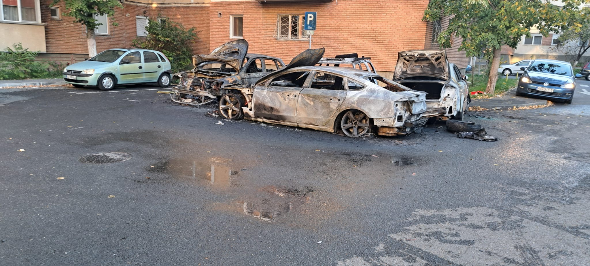 “Incendiul a fost stins prompt, în limitele găsite, fără a se înregistra victime. Cele patru autoturisme au fost afectate în totalitate, iar alte patru aflate în parcarea respectivă au fost degradate.