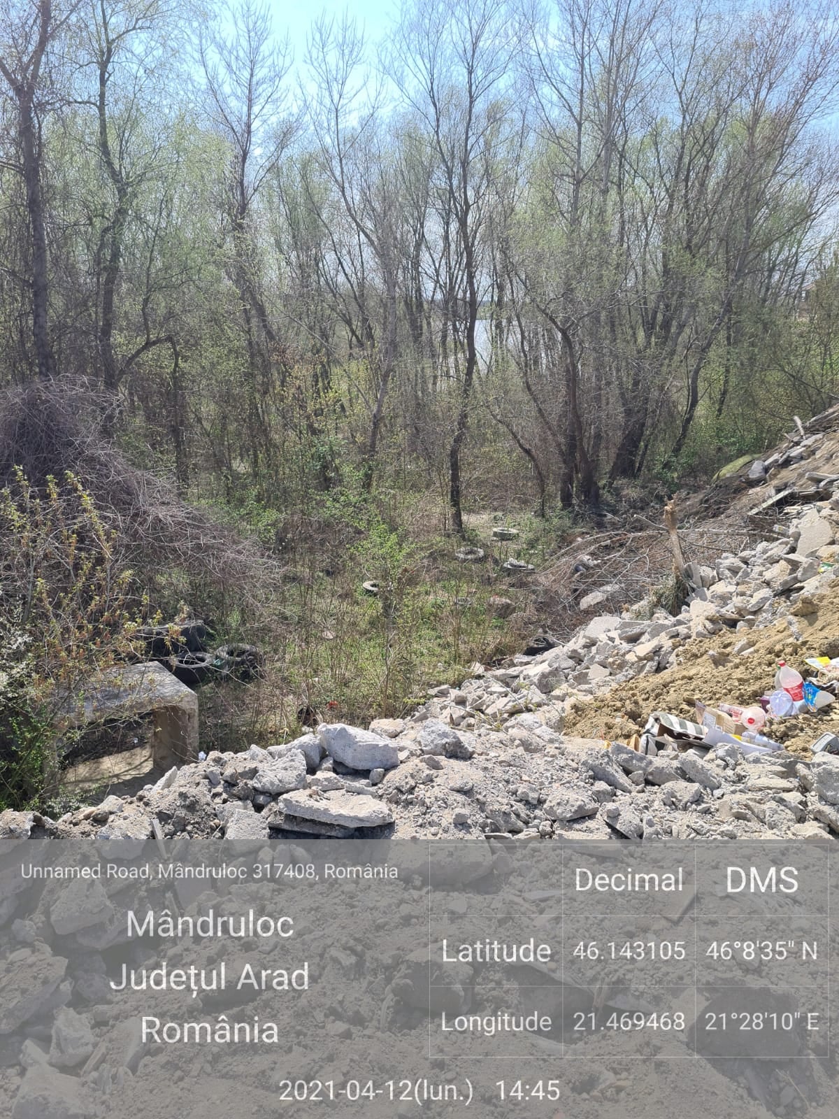 Vladimirescu. Comisarii Gărzii Naționale de Mediu – Comisariatul Județean Arad au constatat depuneri neautorizate de deșeuri rezultate din construcții amestecate cu pământ pe o suprafață de aproximativ 100 mp, la marginea satului Mândruloc, comuna Vladimirescu, pe o locație situată între marginea localității și râul Mureș.