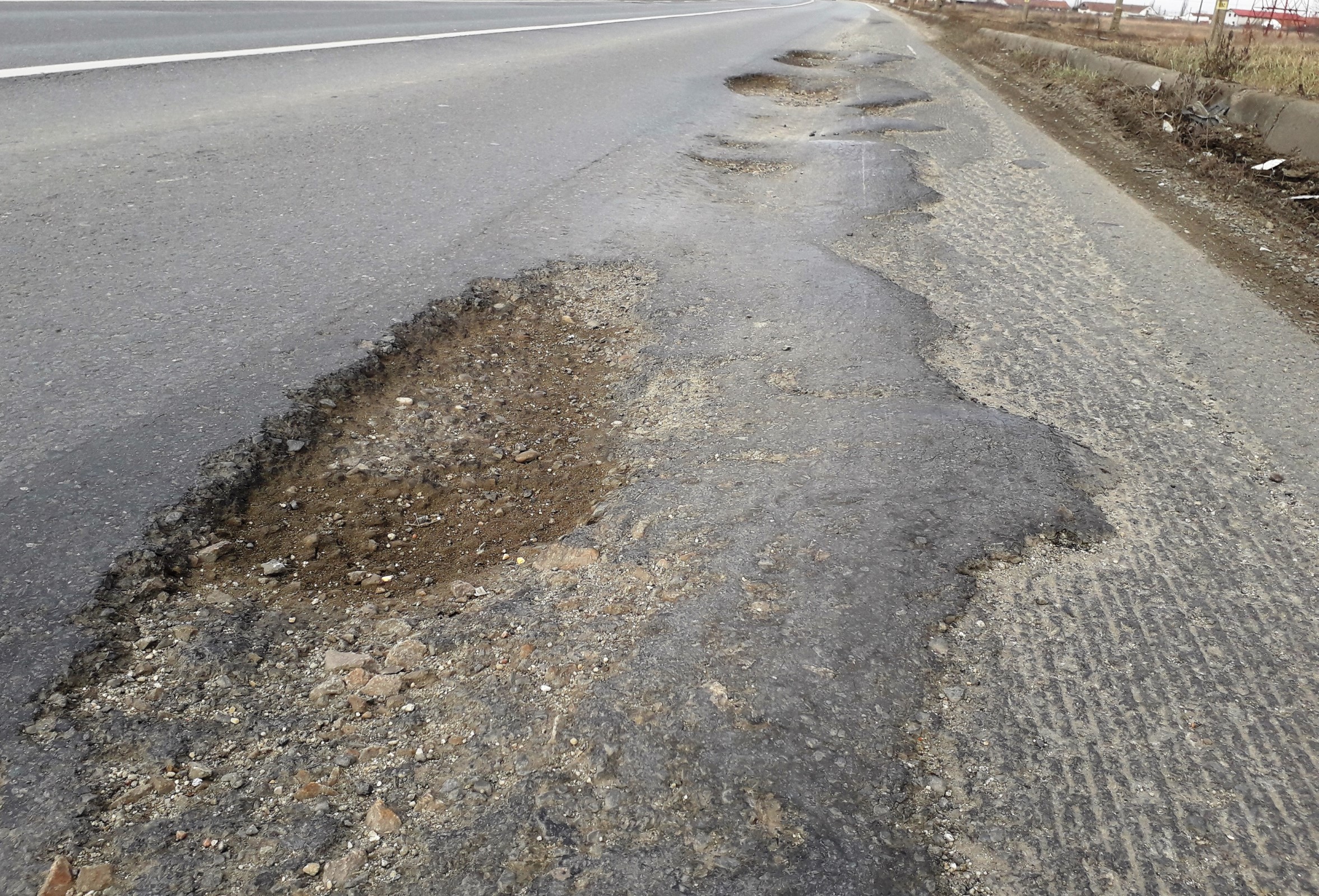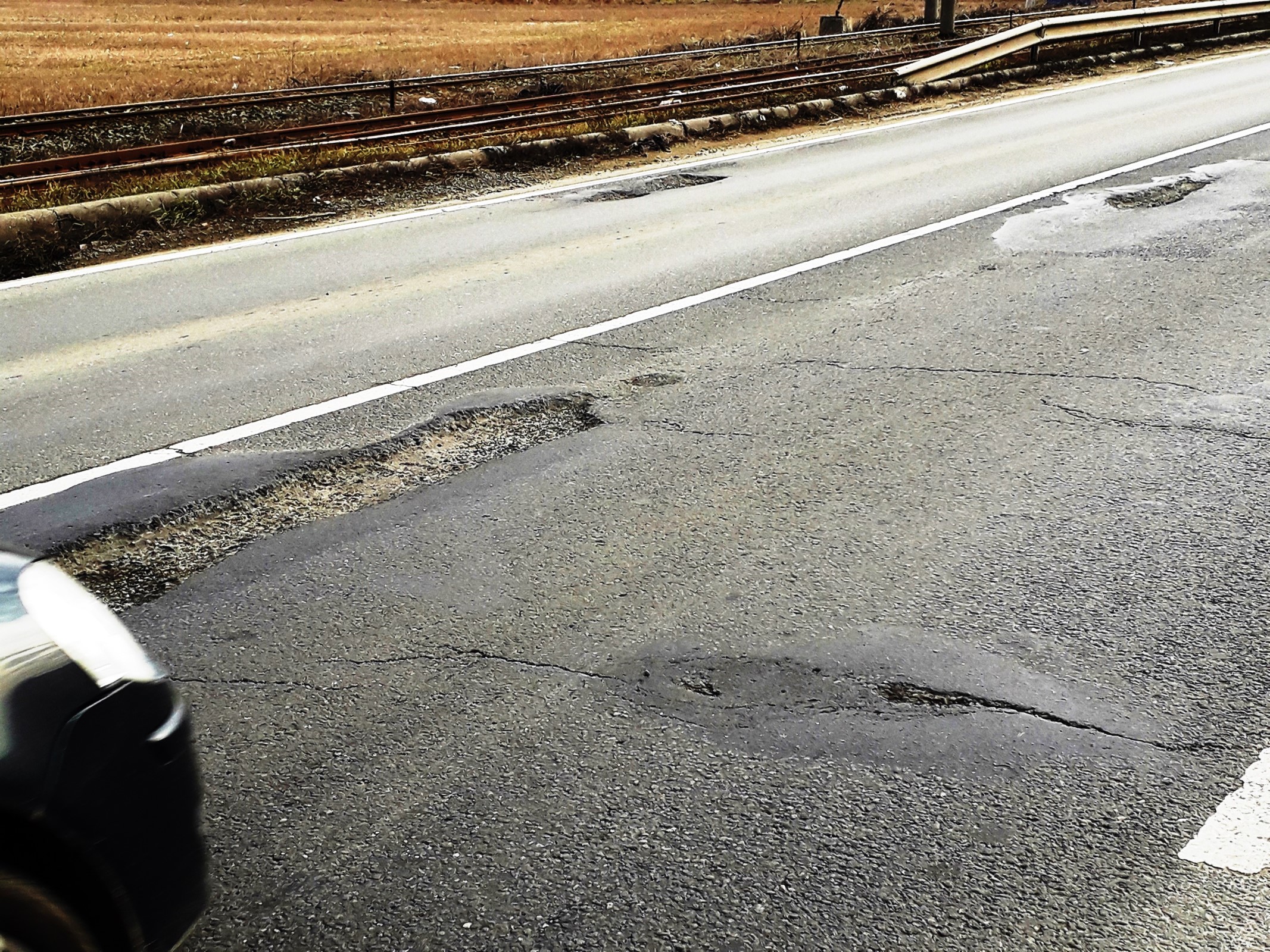 Bătaie de joc pe banii publici. În toamnă, sfârșitul lunii octombrie au fost plombate, pentru că traficul a fost perturbat câteva zile din această cazuă. Se vede calitatea lucrării. Oricum, primele gropi au apărut după vreo 3-4 săptămâni de la plombare, dar nu a interesat pe nimeni. Mă întreb, prin CJA, Primărie, Compania de Drumuri Nationale, nu există funcționari însărcinați cu monitorizarea calității acestor lucrări ? Cei care dau ok pentru plata facturilor. Sau dacă sunt asemenea funcționari, pentru ce își primesc ei salariul (salariu de bugetar, salariu foarte bun, sunt convins, cu multe zerouri în coadă). Ar trebui să vă crape obrazul de rușine netrebnicilor pentru că ați plătit și plătiți lucrări de mântuială pe bani publici și pe prețuri umflate. La prețurile pe care le plătiți o astfel de lucrare ar trebui să reziste de la 10 ani în sus. Oare cât vă trageți comision din astfel de arnjmente ? 10%, 20% sau poate chiar mai mult ? Să vă fie rușine oricum, indiferent cine ați fi. Este o bătaie de joc la adresa cetățenilor. Bine că veniți cu fel și fel de promisiuni acum, în prag de campanie electorală.