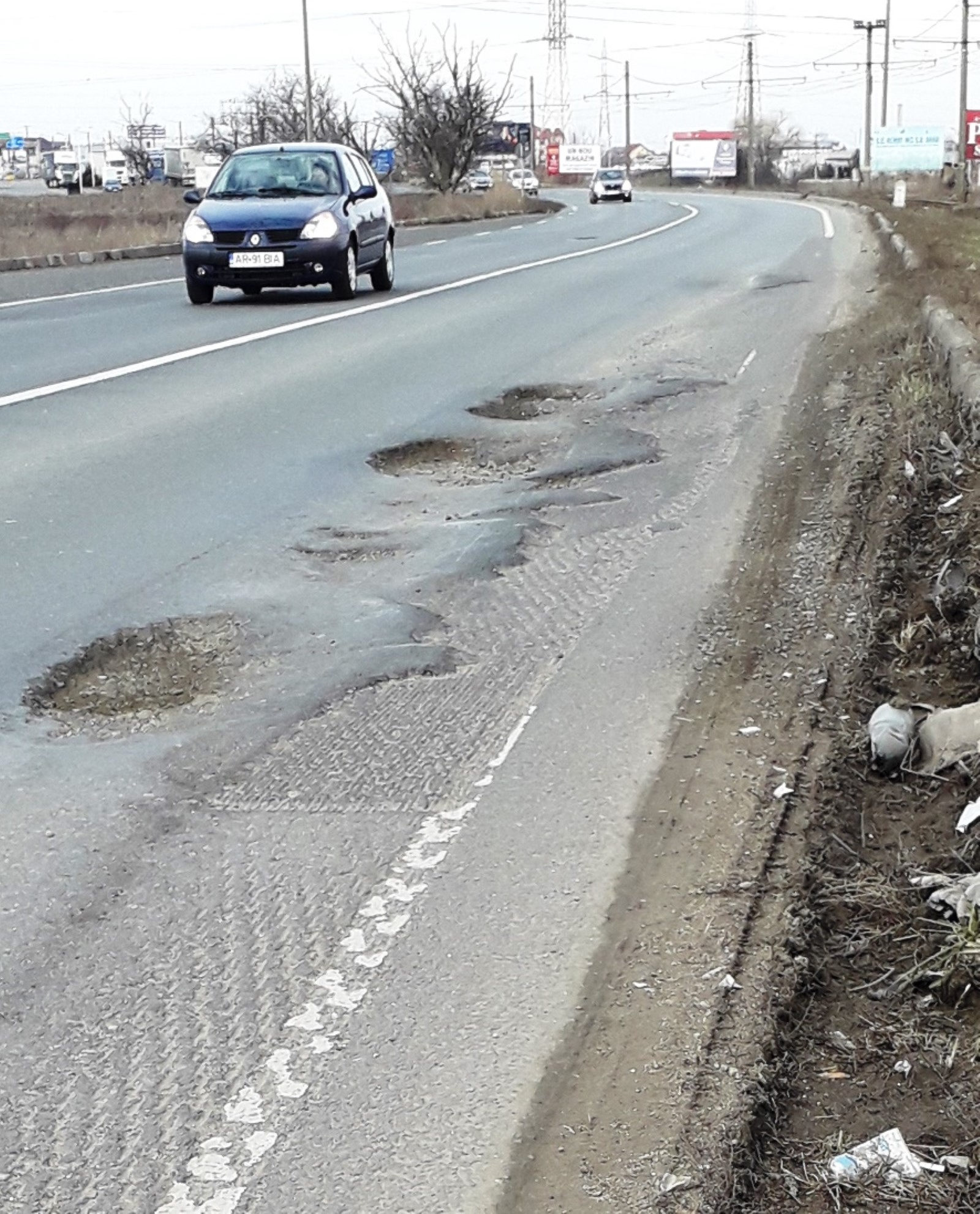 Arad. A fost o iarnă uşoară, fără zăpadă şi, implicit, fără prea multă sare sau alte substanţe împrăştiate pe şosele, însă cu toate acestea de gropi nu am scăpat. DN7 este, din nou, cenuşăreasa drumurilor din judeţ, unul dintre segmentele cele mai afectate fiind chiar cel de la ieşirea din municipul Arad spre Deva. În zona comercială de la marginea oraşului, gropile sunt numeroase şi foarte adânci, încât nu mai pot fi ocolite.