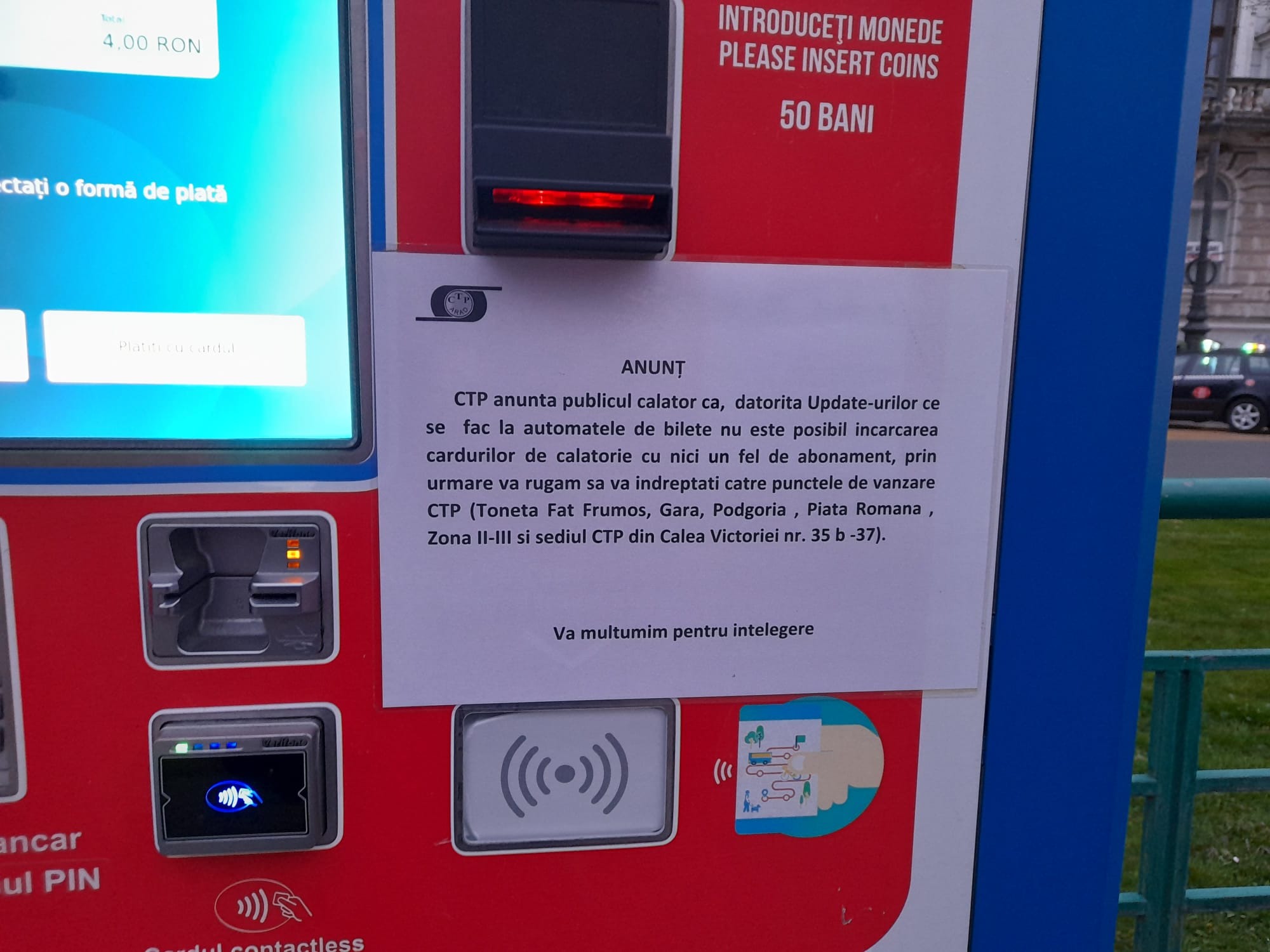 Apropo de plătit cu cardul. Am încercat ieri seară, în premieră, să îmi cumpăr bilet de la noile automate. De obicei sunt în întârziere și n-am timp să caut să văd dacă sunt în stații, de aia prefer varianta „direct în tramvai”. Am ajutat o doamnă să își cumpere bilet pentru că nu știa pe ce să apese ca să îi ia banii, după care, având timp, am spus să îmi cumpăr și eu bilet, să nu mă mai chinui în tramvai dacă nimeresc unul fără aparat de plătit cu cardul.