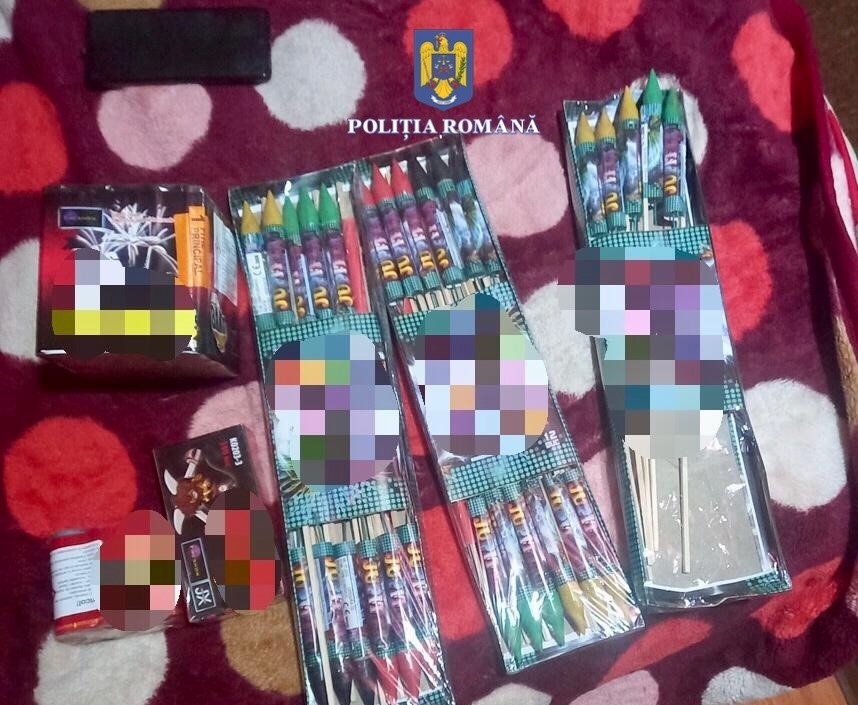ARAD. „În ziua de 21 decembrie, sub coordonarea procurorului de caz din cadrul Parchetului de pe lângă Judecătoria Chișineu-Criș, polițiștii orașului Chișineu-Criș și ai Serviciului Arme, Explozivi și Substanțe Periculoase, au desfășurat trei percheziții domiciliare în localitatea Mișca. În urma activităților, au fost ridicate în vederea continuării cercetărilor, 17.700 de petarde, 468 emițătoare de sunet, 418 artificii, 77 de rachete și 20 de candele, toate din categoria F2, deținute în vederea comercializării, fără respectarea normelor legale. În cauză se continuă cercetările sub aspectul săvârșirii infracțiunilor de efectuare de operațiuni pirotehnice, fără drept”, au anunțat reprezentanții IPJ Arad.