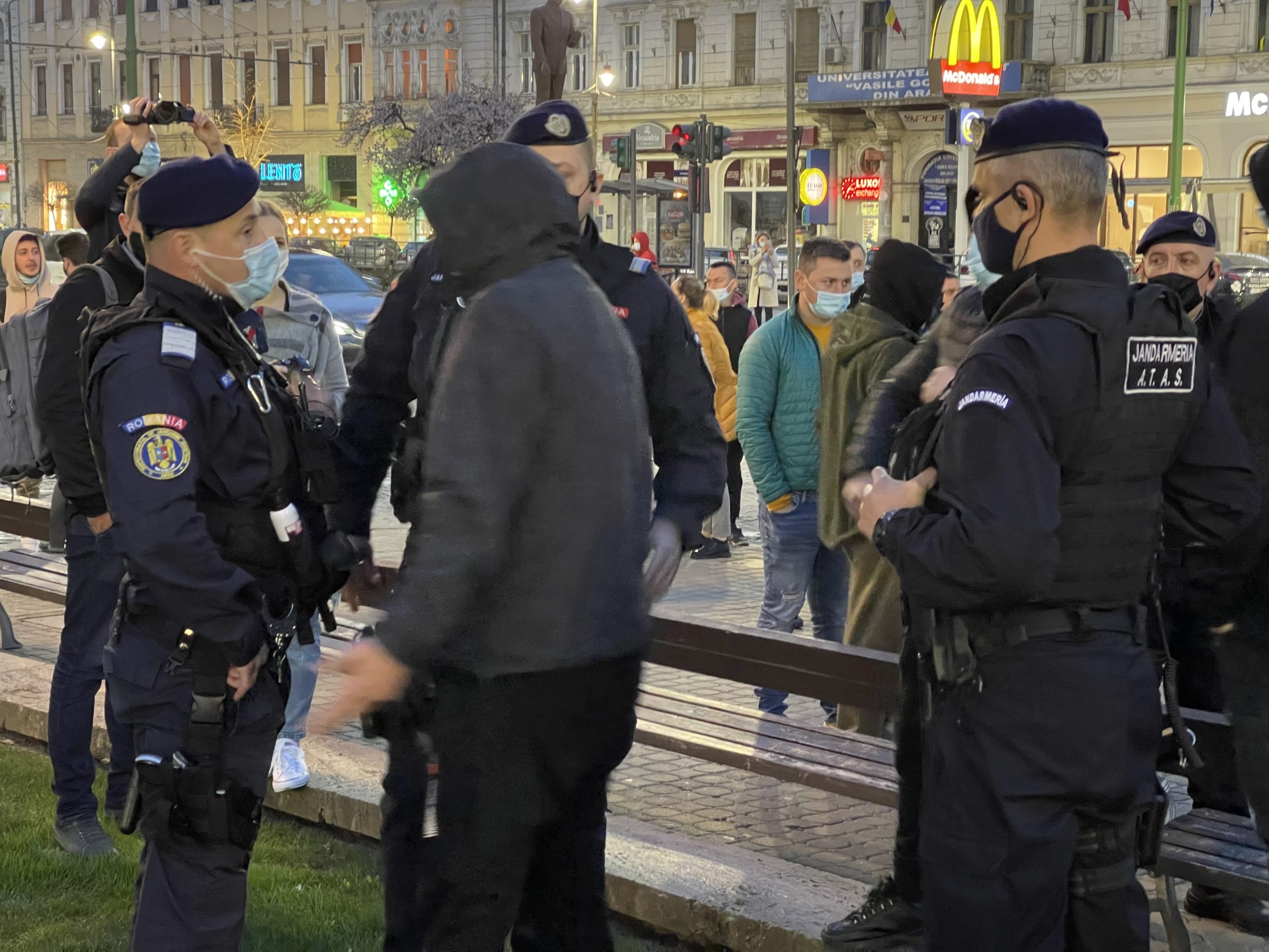 ARAD. Jandarmii au intervenit și au reușit să aplaneze situația. Spiritele sunt deja încinse, iar în atmosferă plutește tensiunea. În continuare, tot mai mulți protestatarii se îndreaptă spre primărie, punctul fierbinte din această seară. Protestarii se indreaptă in marș spre Podgoria. Sensul de mers Primărie – Podgoria este blocat.