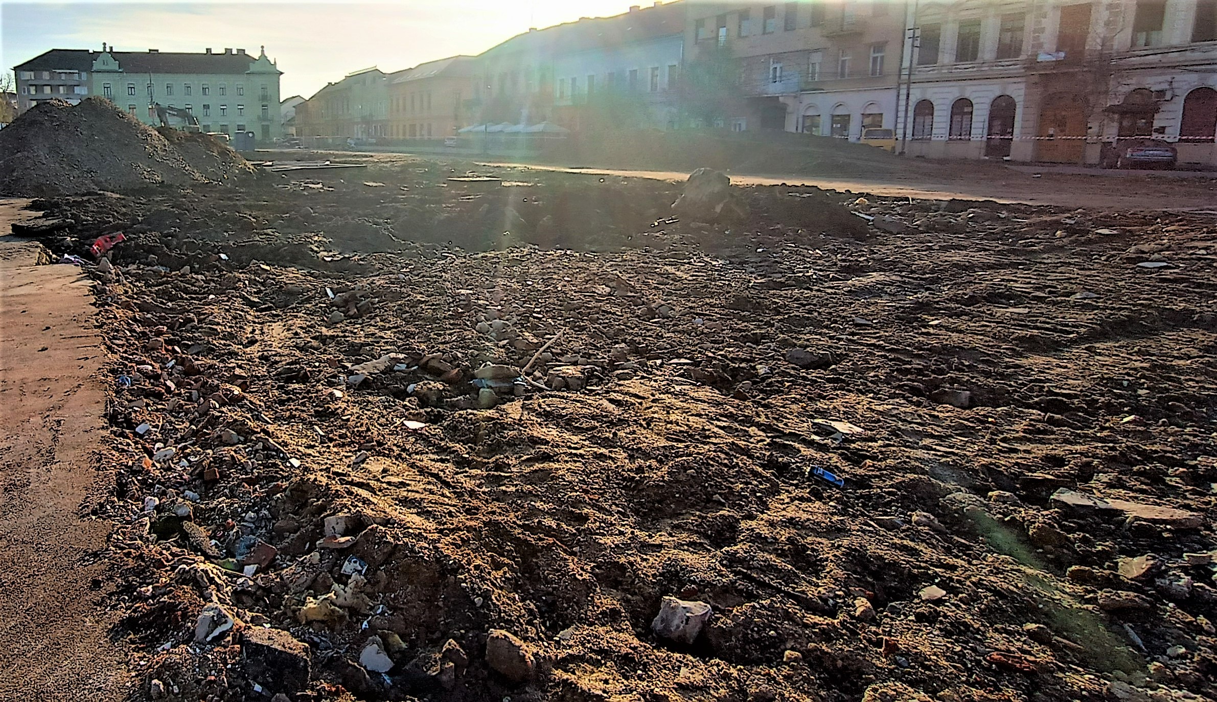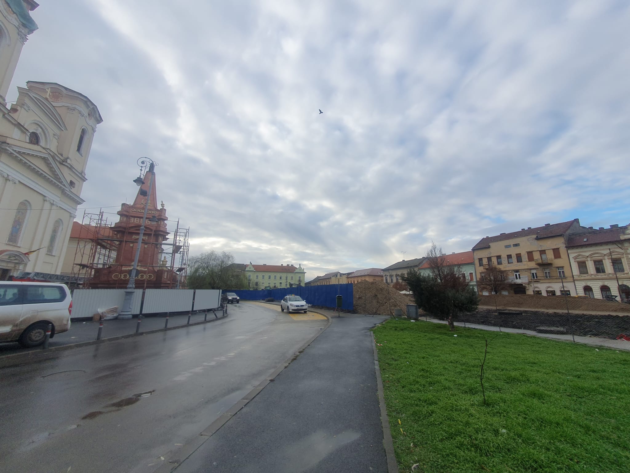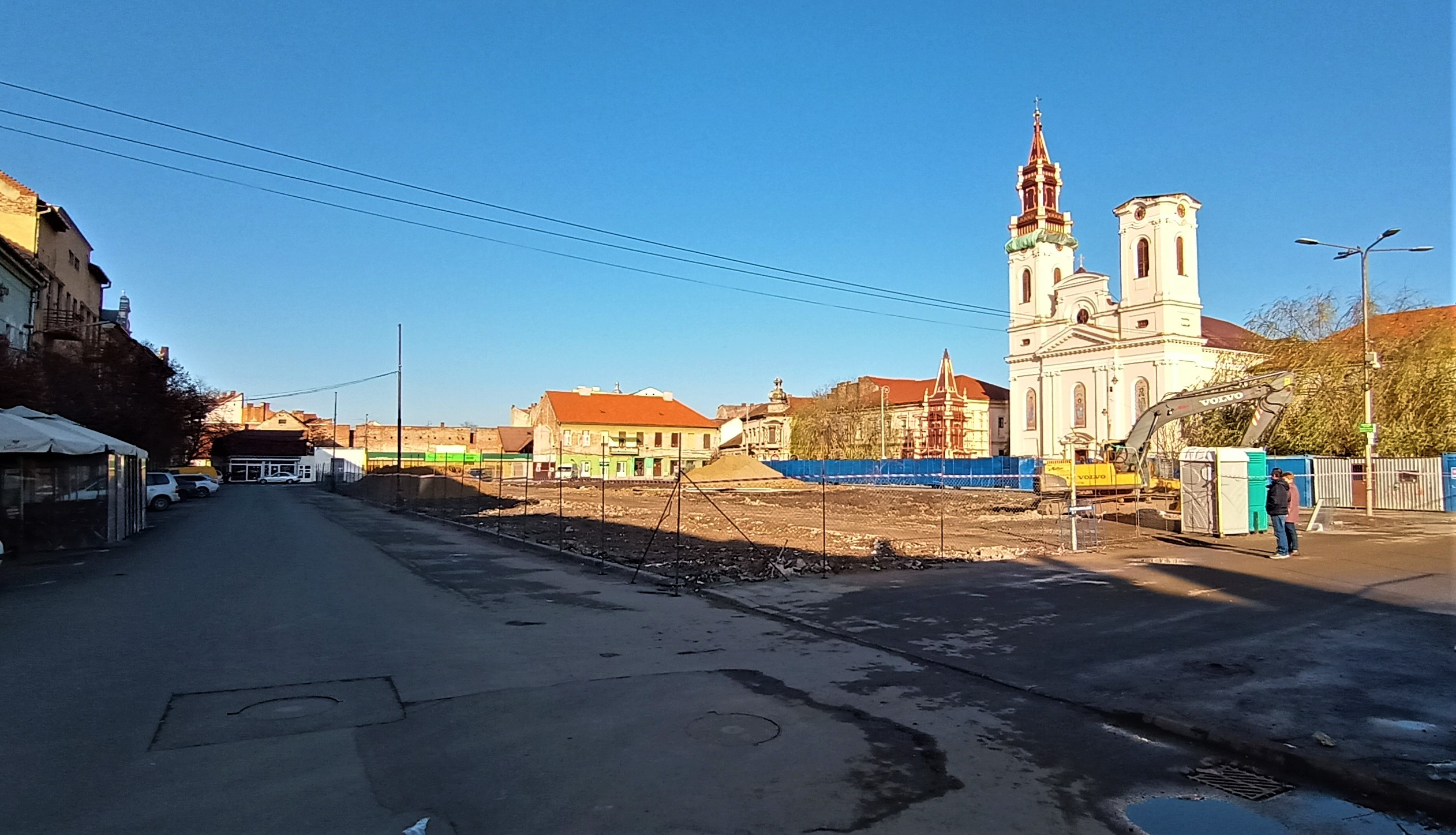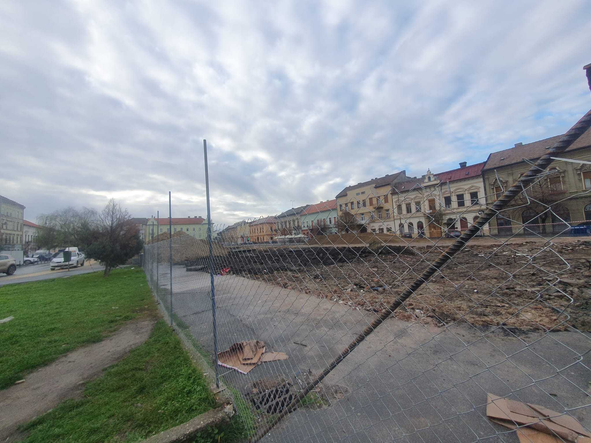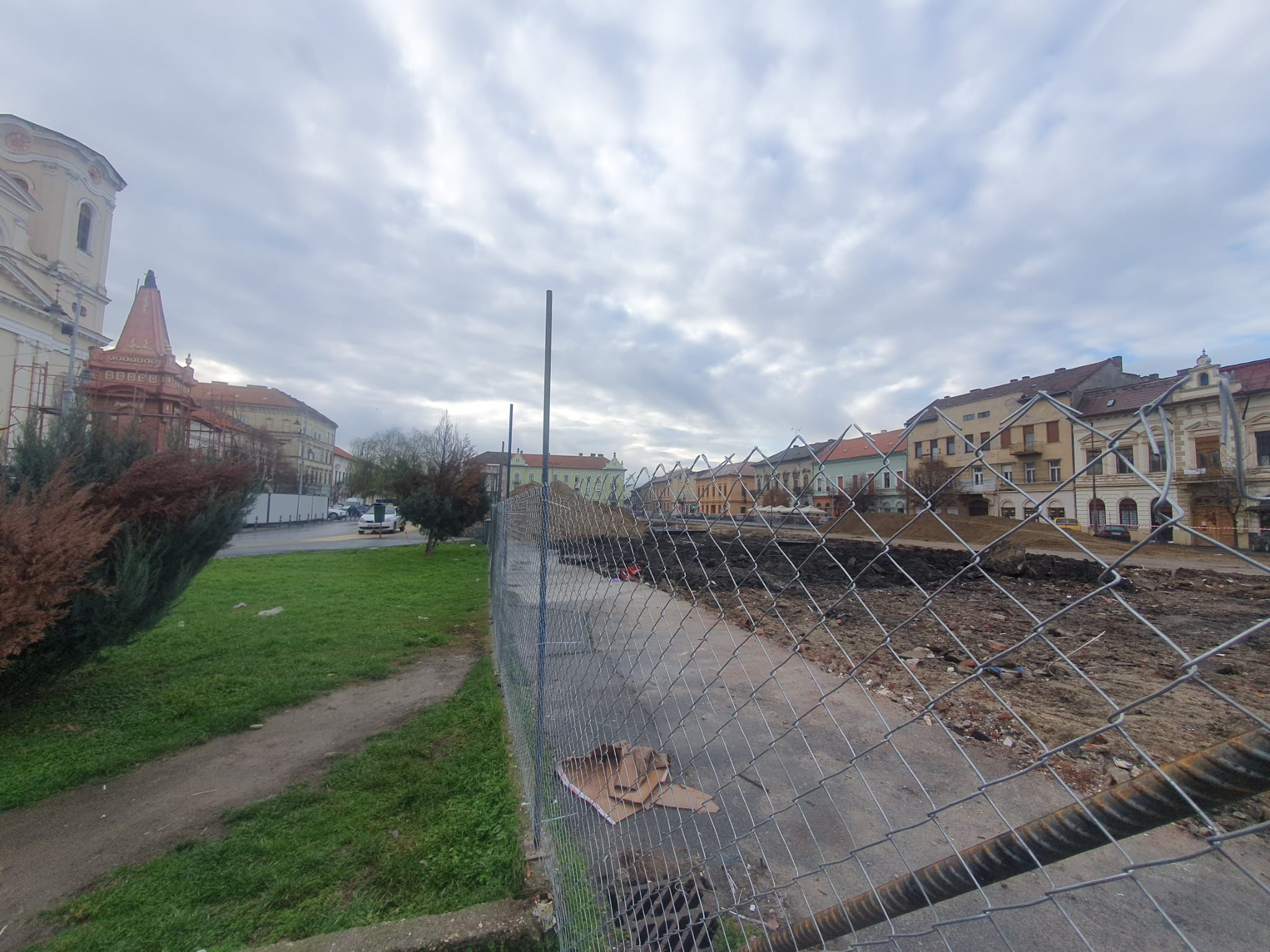 Lucrările din subteran pentru viitoarea fântână se văd în partea dreaptă a pieţei, dacă priveşti stând cu spatele la Catedrala Ortodoxă Veche.