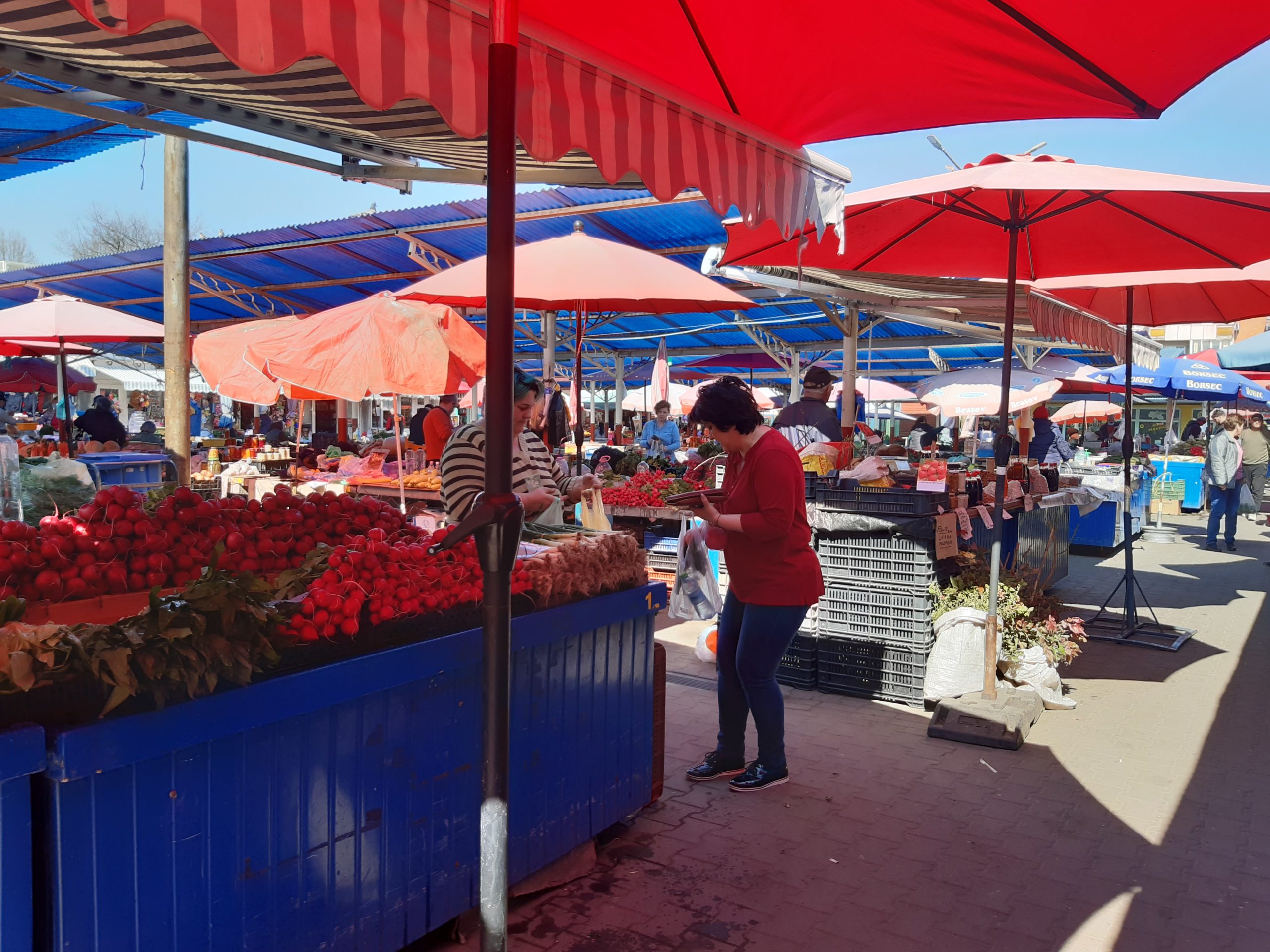 Chiar dacă vizibil restrânsă faţă de perioada anterioară coronavirusului, oferta de ieri din Piaţa Mihai Viteazul a fost totuşi destul de bogată, cu suficiente legume, fructe, produse de panificaţie, lactate sau carne.